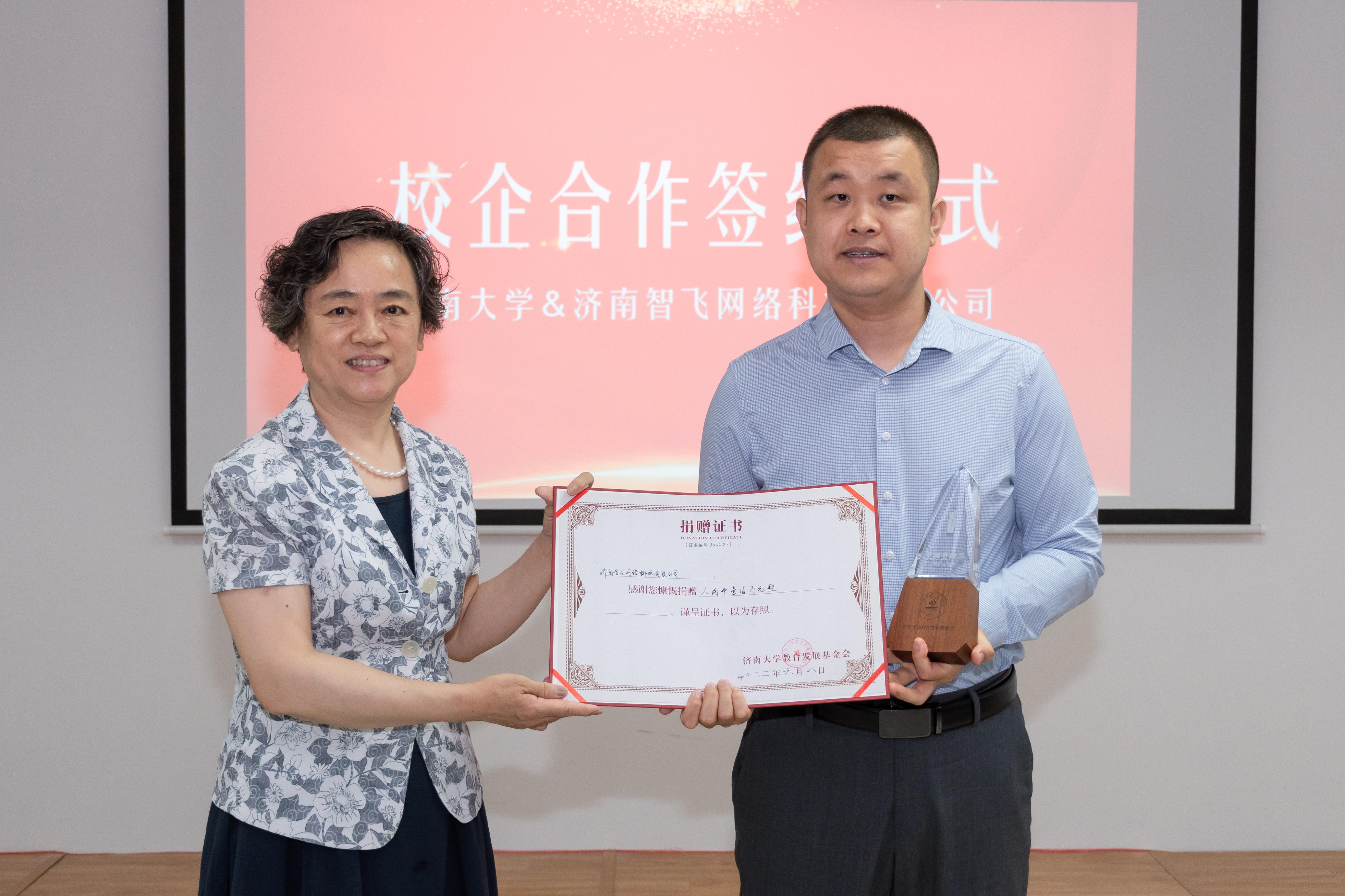 党委副书记张硕秋一行走访济南智飞网络科技有限公司、山东律保标信息科技有限公司开展访企拓岗促就业工作。并与济南智飞网络科技有限公司(以下简称智飞公司)举行战略合作签约揭牌暨捐赠仪式。济南智飞网络科技有限公司董事长、偷拍视频