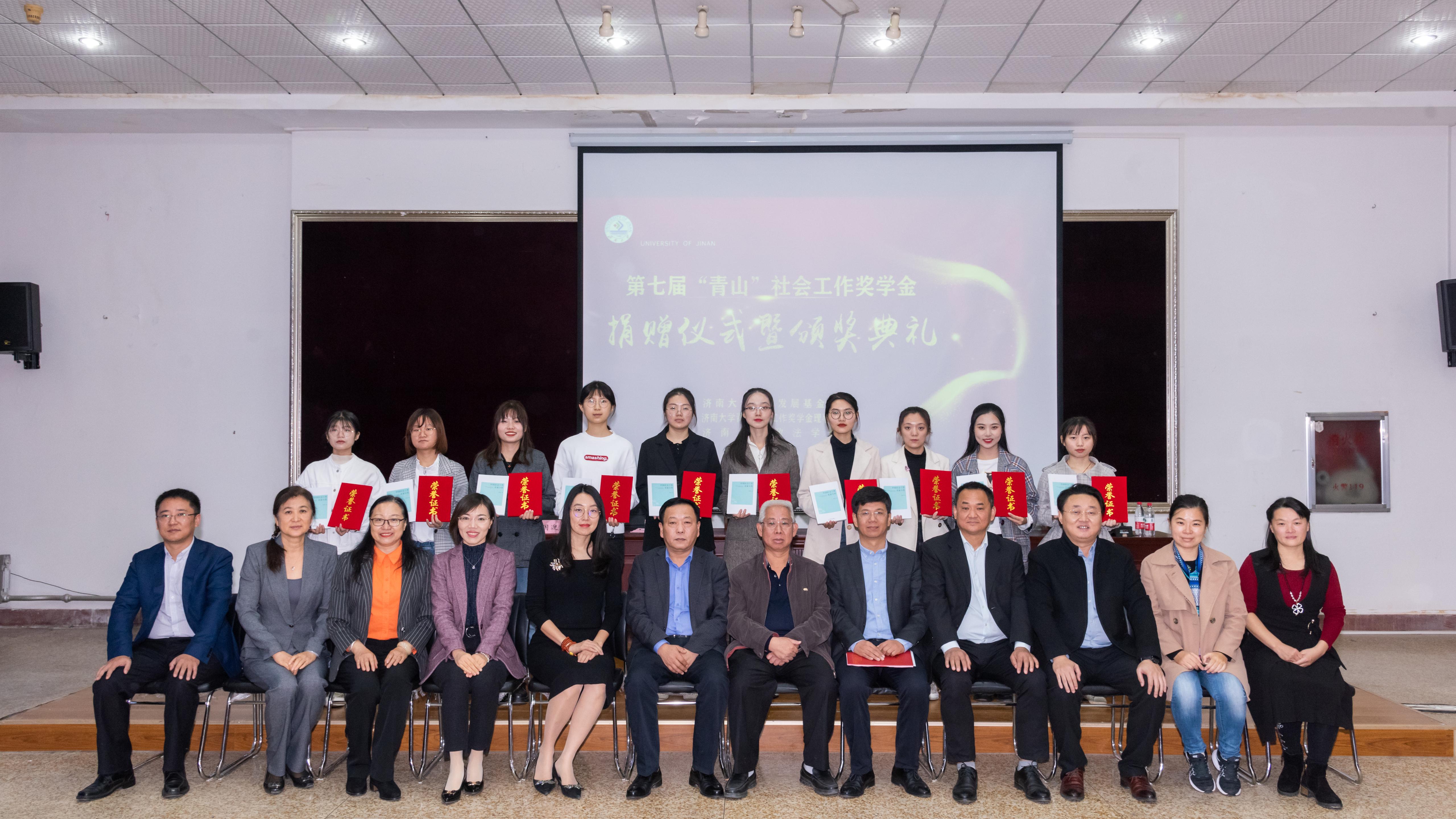 第七届“青山”社会工作奖学金表彰决定,与会嘉宾为获得第七届“青山”社会工作奖学金的学生颁奖。