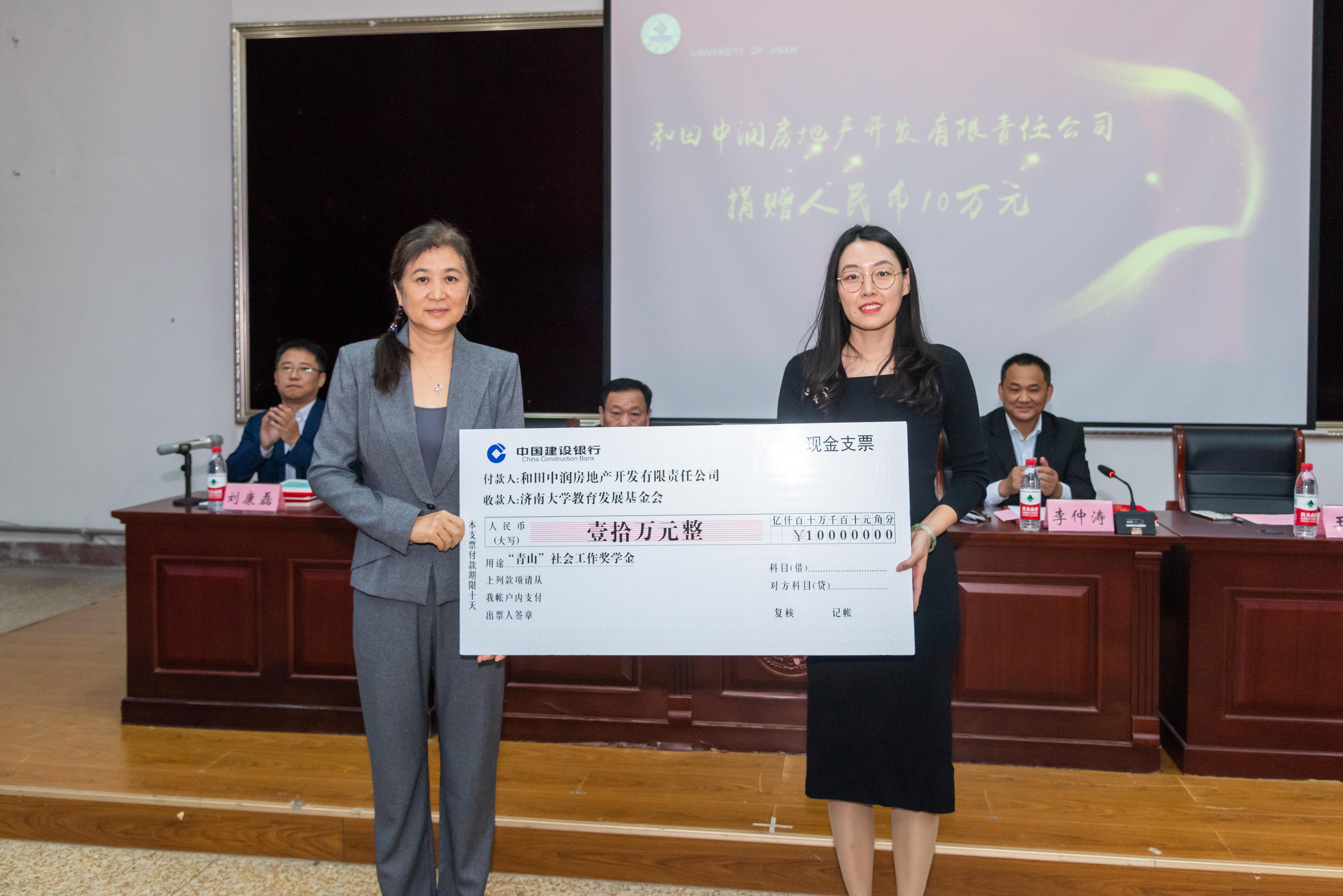 理事会会议结束后,第七届“青山”社会工作奖学金捐赠仪式暨颁奖典礼举行。活动上,和田中润房地产开发有限责任公司总经理、原济南民政学校校友宋怀明捐赠奖学金十万元,偷拍视频