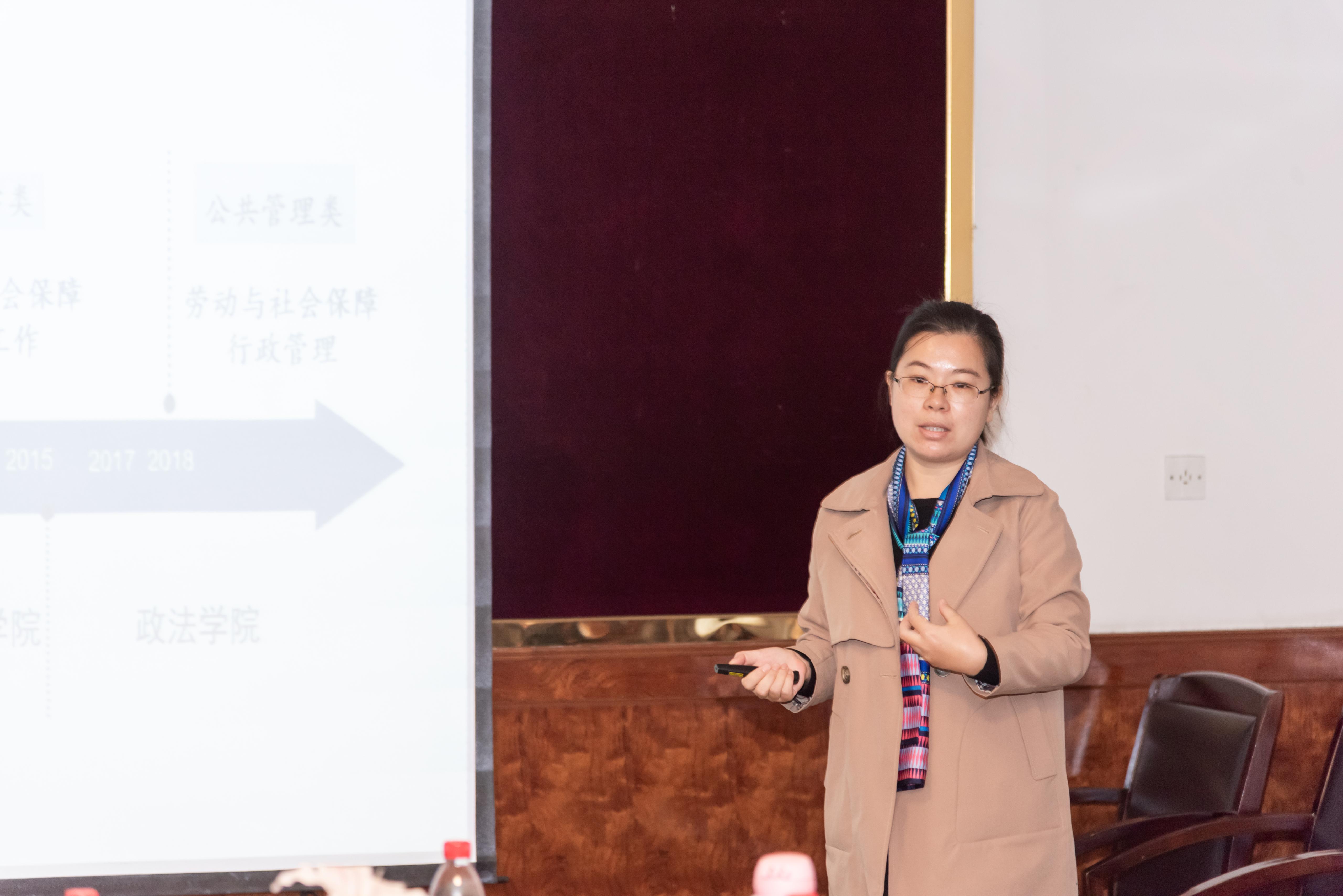 人才培养研讨会。社会学系教师许淑华从大赛背景、内容、过程、收获、以及“青山”社会工作奖学金获奖学生近况等方面进行“青山杯”汇报以及未来展望。人力资源与社会保障系主任朱丽敏老师进行了《劳动与社会保障专业人才培养状况》汇报。围绕学校和学院发展建设、奖学金作用发挥和个人成长境遇,与会人员就“青山”社会工作奖学金对学生的作用与意义畅所欲言。、