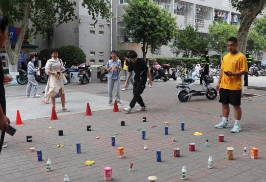 本次活动分为心理知识问答、套圈两个部分进行。下午四点,工作人员到达八食广场,开始对活动现场进行布置。伴着灿烂的阳光,微风习习中,活动拉开了序幕。人来人往的八食广场上,南面一角十分热闹,树荫下的答题套圈活动深受大家喜爱。参加活动的同学们通过抽签的方式参与心理知识问答,既学到了心理健康知识,也获得了套圈奖励。套圈场地中,满地的小礼物让人心生欢喜,一个个圈被肆意抛出,有的稳稳落地,有的却调皮地滚向别处。