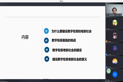 杜鹏教授分别从为什么要建设数字包容的老龄社会、数字包容面临的挑战、数字包容老龄社会的建设、建设数字包容老龄社会的意义四个方面对《建设数字包容的老龄社会:挑战与应对》这一课题展开分析。杜教授首先对数字包容社会进行了解释,并从三个方面进行讲解。随后,杜教授指出当前互联网时代老年人生活所面临的挑战,并从主观和客观角度对原因进行分析,指出构建包容性的互联网环境和数字生活应从加强老龄社会治理高度统筹解决。最后,杜教授指出建设数字包容社会有利于推动全面实现可持续发展目标,助力开发老龄经济新潜力,为老年人赋能,增加老年人福祉,建设数字包容社会同时也是实现积极老龄化的重要路径。