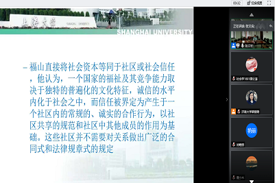 张文宏教授以当前国内外新冠肺炎疫情的分析数据为切入点,详细讲解了社会资本的三个层次和社会资本机制在疫情防控中的具体表现。张文宏教授指出社会信任是战胜疫情的社会资本,我们要谨防社会歧视、社会排斥和污名化的蔓延,同时也要对现代世界的高度风险有充分认识。面对突发公共卫生事件,政府社会资本的投资应注重社会信任的制度建设,企业社会资本的投资要重视诚信制度的建设,社区社会资本的投资应鼓励社区社会组织的有序发展,个人社会资本的投资要注重“弱关系”网络的构建。以此才能为构建多元化、异质性的社会网络创造良好的社会环境,才能促进社会资本从封闭走向开放、从特殊信任转向普遍信任,才能更好地完善党委领导、政府负责、民主协商、社会协同、公众参与、法治保障、科技支撑的社会治理体系。