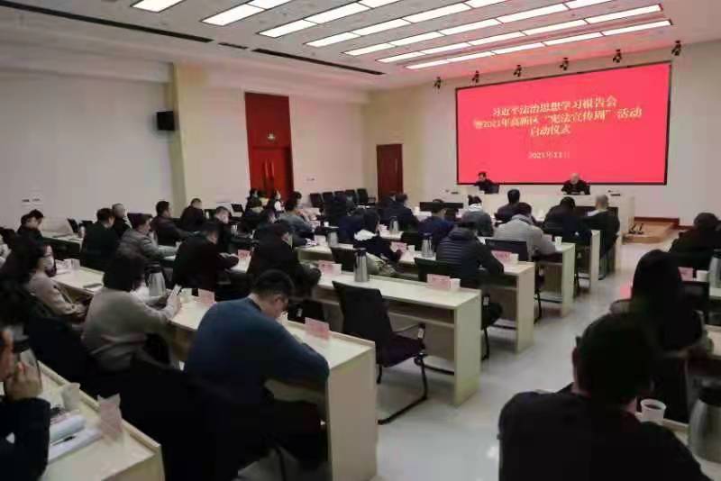为推动全区干部职工深入学习贯彻习近平法治思想和十九届六中全会精神,11月30日,济南高新区举办“习近平法治思想学习报告会”暨2021年高新区“宪法宣传周”活动启动仪式。张德军教授受邀作了专题报告。报告以“习近平法治思想”为主题,从习近平法治思想产生的时代背景、习近平法治思想基本内涵、依法行政和高素质法治队伍建设等方面,系统阐述了全面依法治国的重大意义、精神内涵和实践路径,对全区干部更好学习贯彻习近平法治思想,扎实推进法治政府建设,不断提高依法治区水平,具有重要指导意义。济南高新区管委会主任助理张庆胜主持了本次活动。济南高新区各相关单位分管负责同志五十余人参加了学习活动。