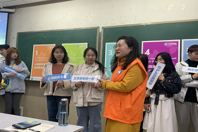 经过短暂的中场休息,李总干事开始讲授第二部分“忆路同行”。李总干事首先分享了该项目设计的缘起及建设过程,然后通过生活事例向社工专业师生阐述了关爱认知症患者项目发起的必要性,并结合自身实务经历讲解了社工介入认知症患者的方法。随后,李总干事通过理论与实践相结合的方式,向同学们生动介绍了如何通过认知症患者表达出来的语言、行动来了解其真正需求。讲座结束之际,李总干事再次以播放短视频的形式,使同学进一步了解了认知症患者的言行和与其正确交流的方式。