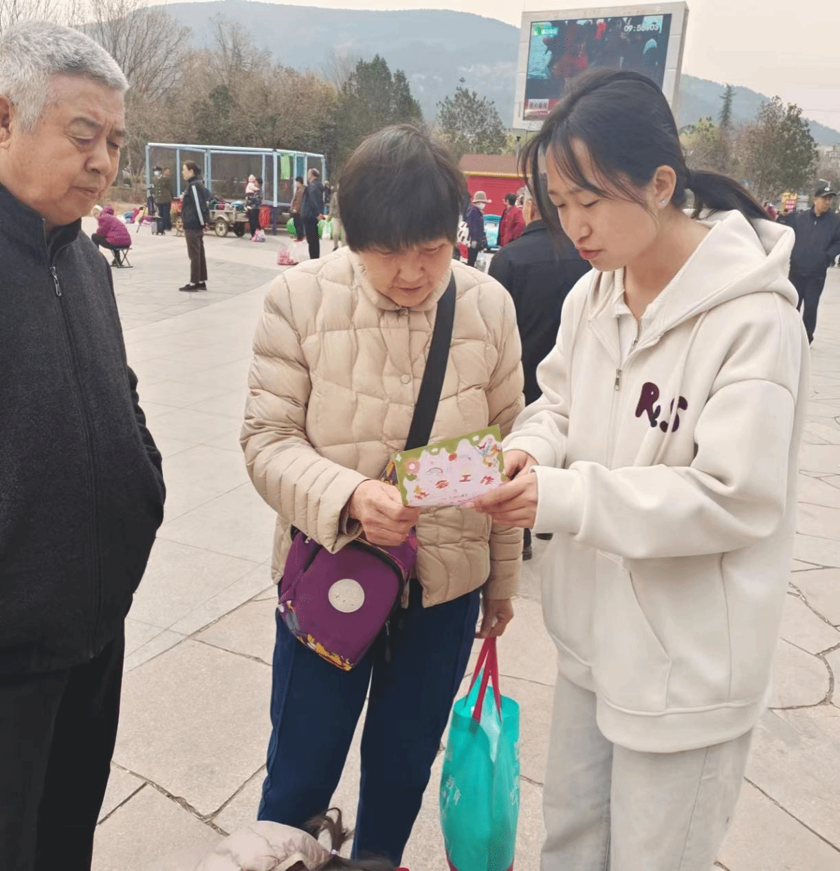 活动开始,社工学子首先通过发放宣传单的方式,吸引大众广场居民驻足围观。虽然一些社区居民表示对社工不太了解,但在同学们耐心讲解介绍下,对社会工作有了初步认识,对社会工作者的形象也逐步清晰起来。