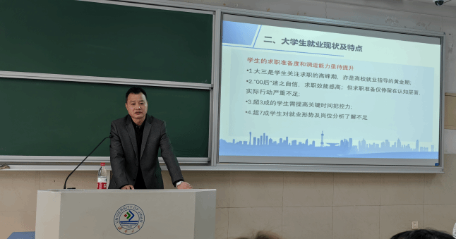 2024年两会政府工作报告中25次提及就业。报告指出,就业是最基本的民生,要突出就业优先导向,加强财税、金融等政策对稳就业的支持,加大促就业政策力度。为提高同学们的就业导向意识,3月22日上午,人力资源与社会保障系特邀济南市公共就业服务中心人力资源市场处副处长李允松莅临偷拍视频