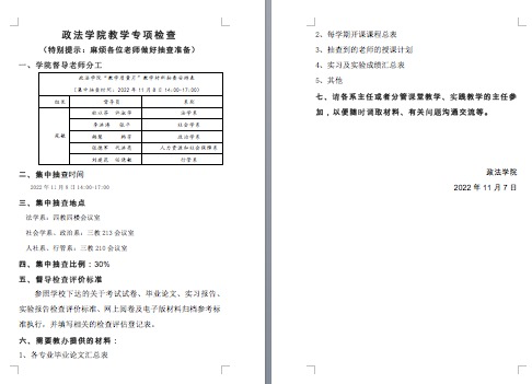 于11月8日开展教学质量专项检查工作。