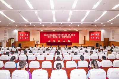 党委副书记、副院长于龙泉宣读《关于准予第十一期“青年马克思主义者培养工程”学生骨干培训班学员结业的决定》,96名学员认真完成培训任务,顺利结业。与会领导老师为第十一期青马班25名优秀学员颁发证书。第十一期青马班学员代表齐志良回顾了自己在青马班一年来的收获,从理论学习、社会实践、科技创新、志愿服务四个方面分享成长经历。第十二期青马班新学员代表杨舒雯表达了自己加入青马班的热切愿望,表示将珍惜学习机会,认真参加培训,努力做到对创新理论的学思用贯通、知信行统一。