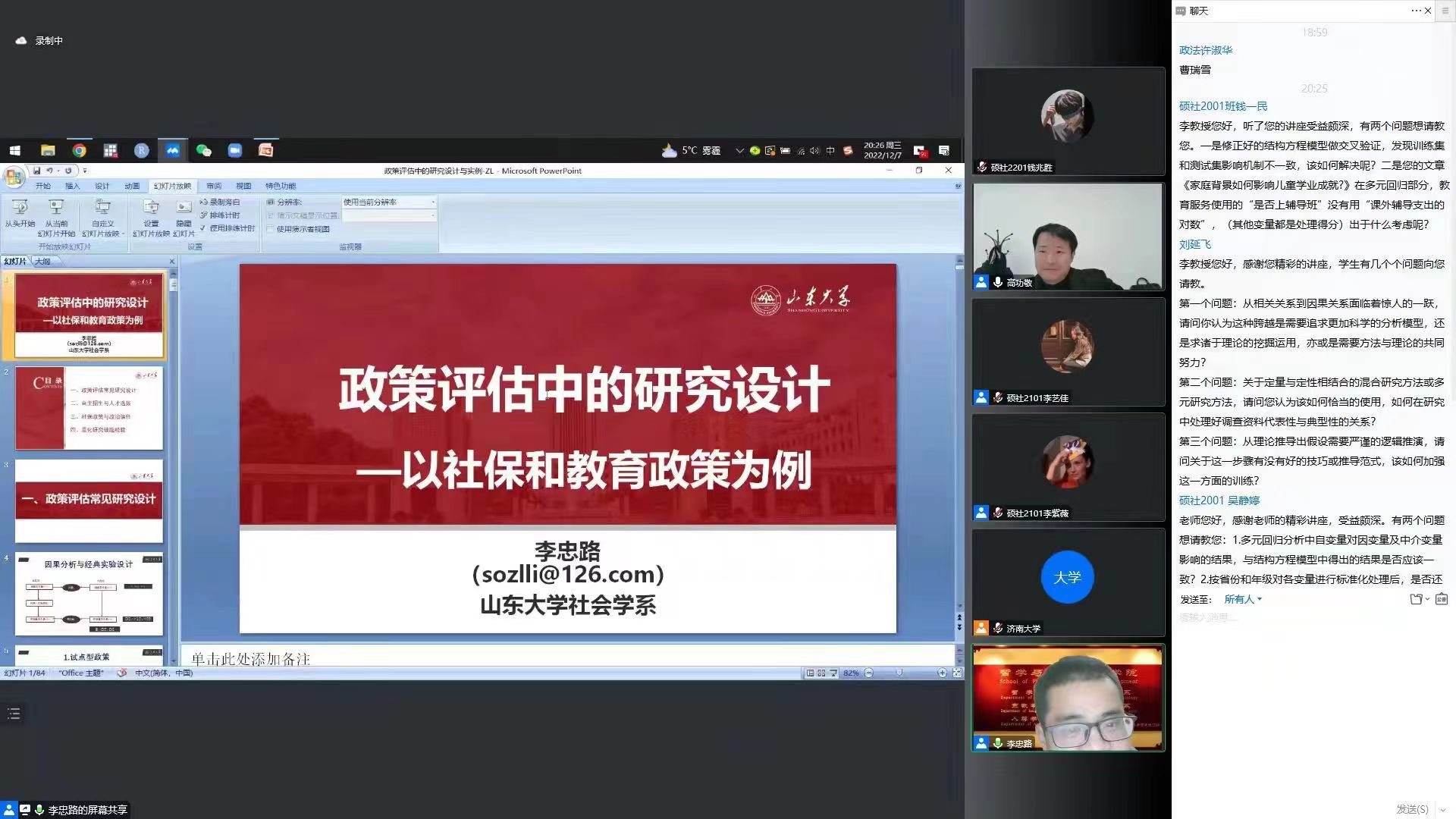 青龙山学术论坛于腾讯会议线上平台成功举办,邀请山东大学哲学与社会发展学院李忠路教授作题为《政策评估中的研究设计与实例》的学术报告,报告由院长高功敬教授主持,学院教师及研究生、本科生共120余人线上参加。