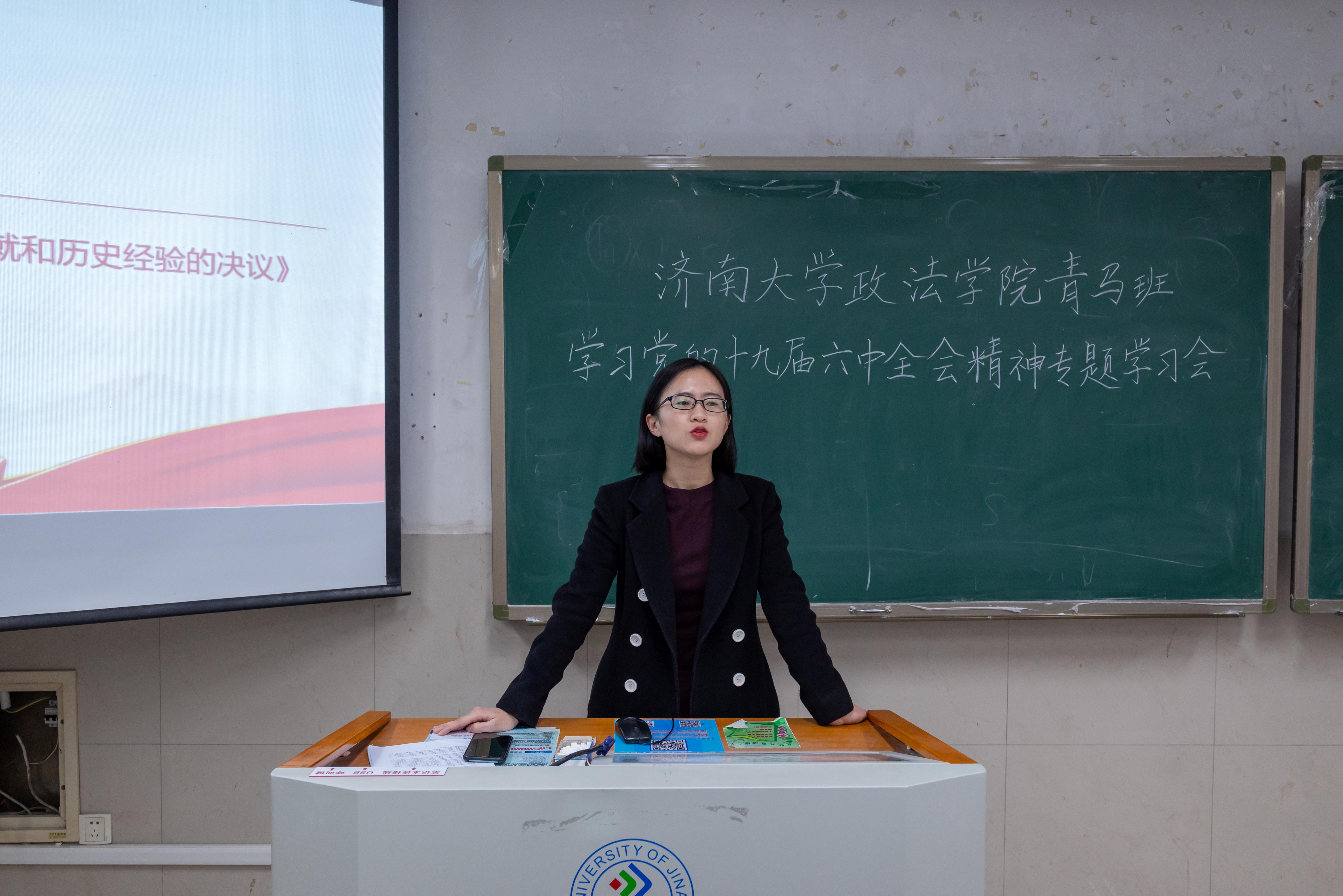 会上,李扬领学党的十九届六中全会公报内容,晁素娜老师围绕《中共中央关于党的百年奋斗重大成就和历史经验的决议》,从为何制定《决议》、深入认识《决议》的重大意义和重要影响、《决议》的基本框架、《决议》的基本内容以及认真学习贯彻党的十九届六中全会精神等五个方面进行讲解。她提出作为青马班学员要进一步坚定马克思主义信仰,认真学习习近平新时代中国特色社会主义思想,用马克思主义的立场、观点、方法观察时代、把握时代、引领时代;做到先学一步,学深一层,坚持读原著、学原文、悟原理,从百年党史取得的伟大成就和形成的伟大精神中汲取奋进力量;结合自身所学专业,练就过硬本领,将学习全会精神转化为实际行动,为全面建设社会主义现代化国家贡献力量。
