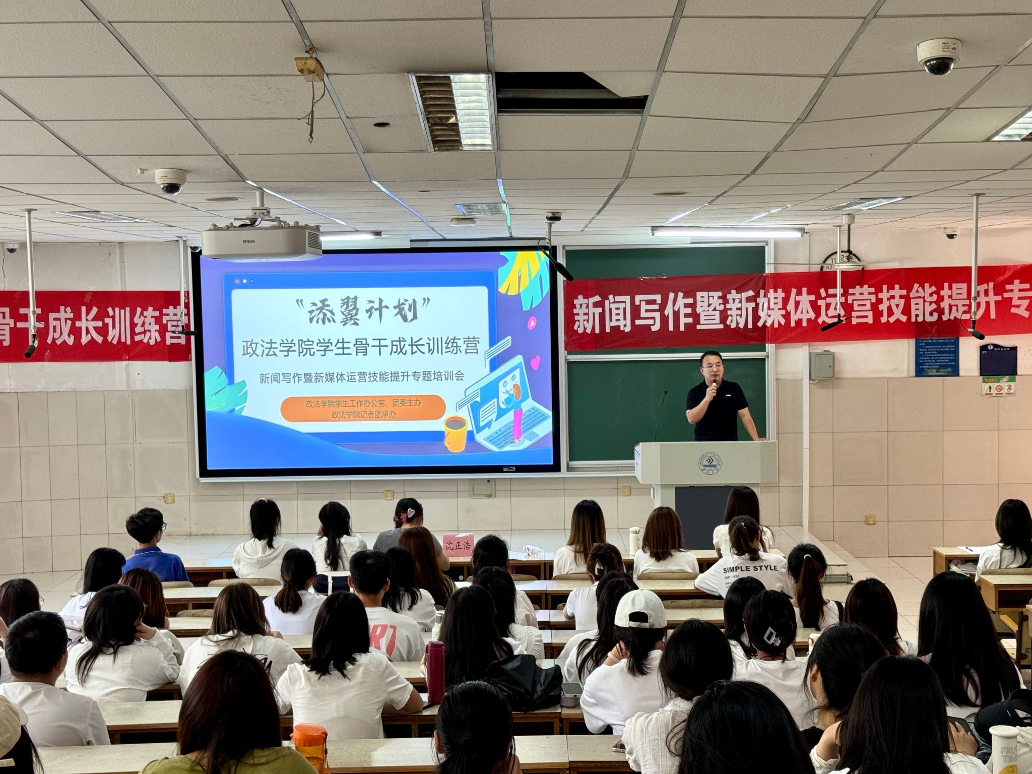 学生工作办公室、团委主办,学生记者团承办的“添翼计划”学生骨干训练营——新闻写作与新媒体技能专题培训活动成功举办。本次活动特邀校记者团、校融媒体中心部门负责同学作为主讲嘉宾分享新闻采编及推文制作经验,偷拍视频