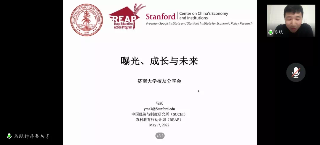行政管理专业“劳动教育”&“认识实习”暨行管系成立二十周年系列讲座第三期线上成功举行。本次会议邀请了斯坦福大学Freeman Spogli国际研究所经济学研究员、我校行政管理专业2007级优秀校友马跃博士进行主旨分享。偷拍视频