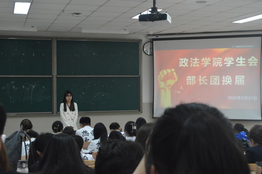 学生会于11教5段101召开部长团换届选举大会,第二十二届学生会部长团及干事参加会议。