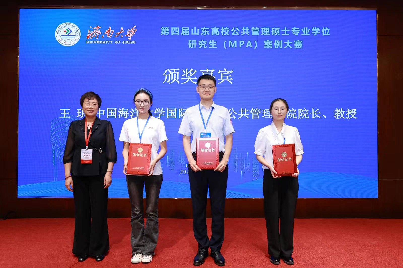研究生院副院长仲倩、党委研究生工作部副部长王磊出席闭幕式并宣读获奖名单,山东学位与研究生教育学会秘书处、山东师范大学研究生院副院长宋强,中国海洋大学国际事务与公共管理学院院长王琪教授等总决赛评委出席闭幕式并为获奖团队颁奖。
