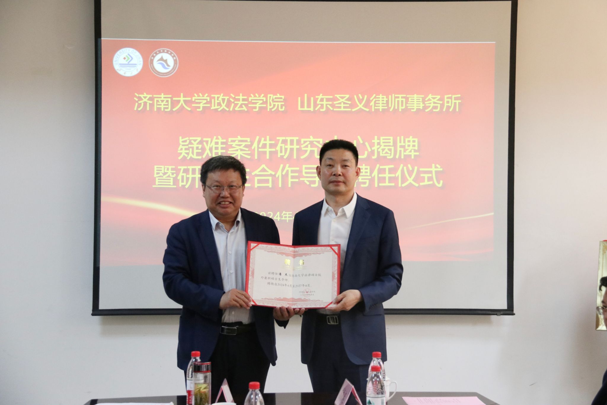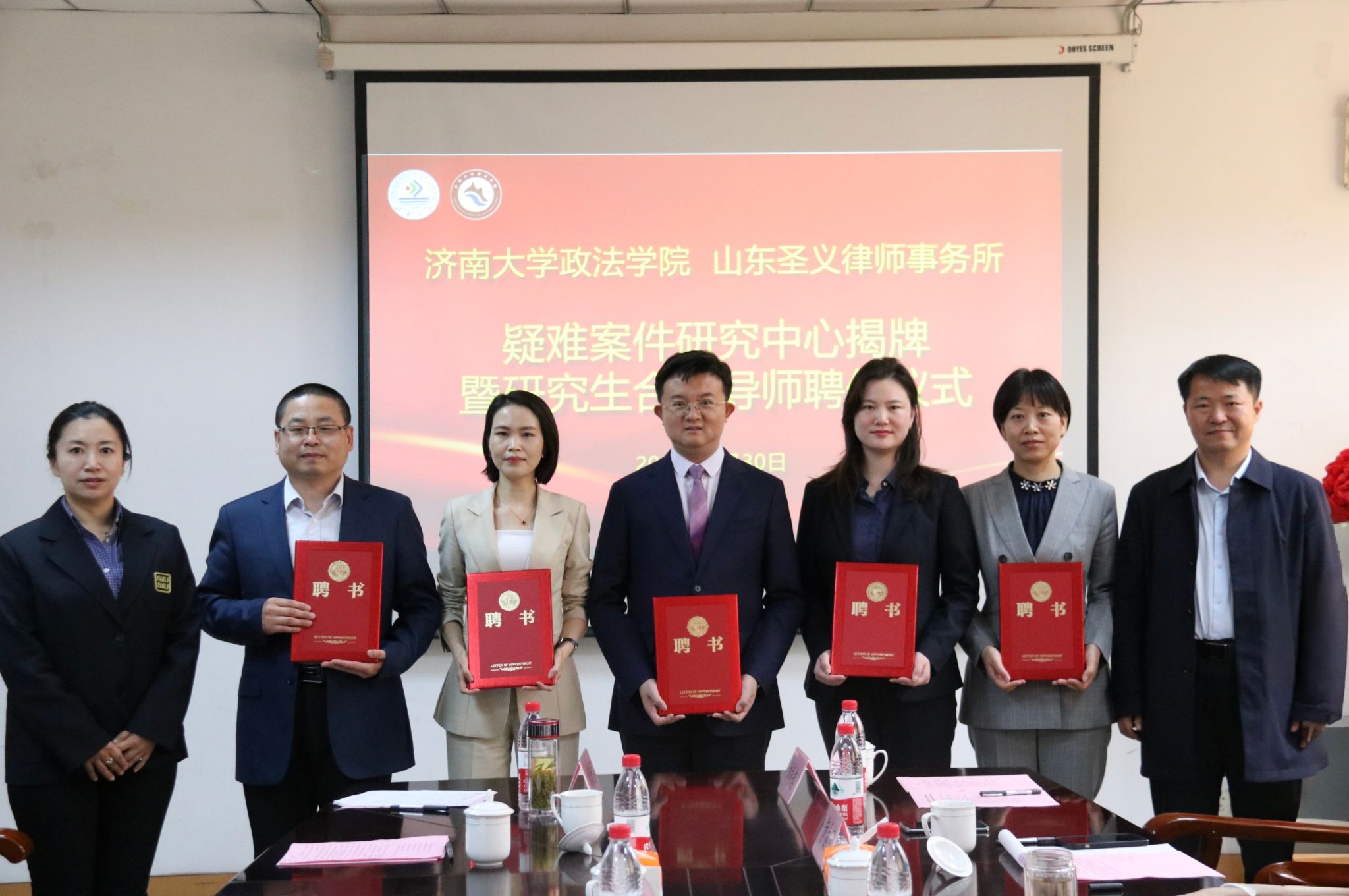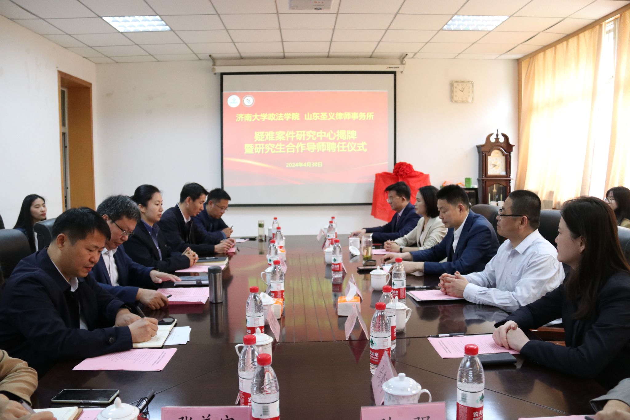 与山东圣义律师事务所于第三教学楼213会议室举办疑难案件研究中心揭牌暨研究生合作导师聘任仪式。济南市律师协会会长、山东圣义律师事务所党支部书记、主任潘杰,副主任王培国、黄春燕、张珊珊、刘振起、张秀玲,偷拍视频