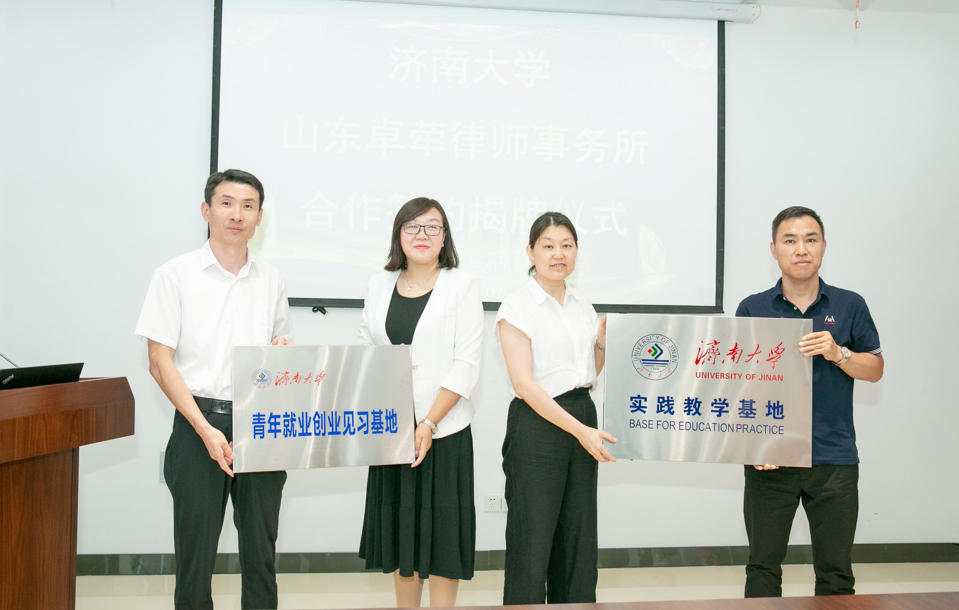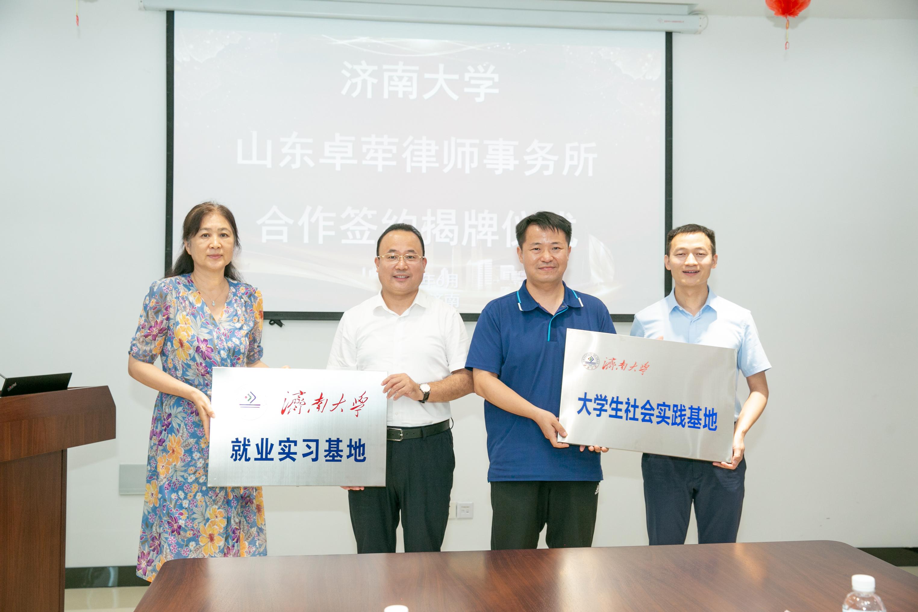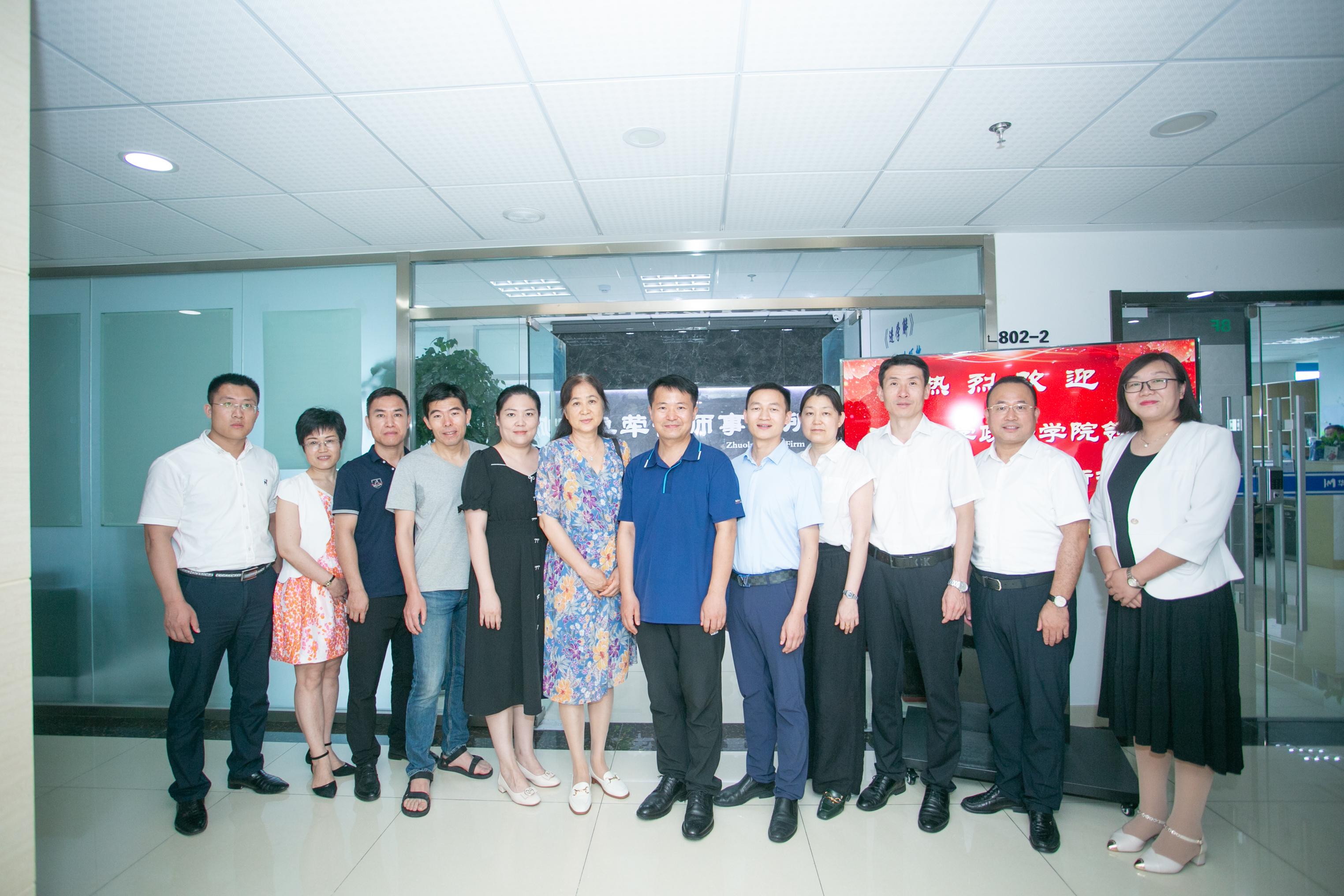 院长高功敬一行赴山东卓荦律师事务所开展校企合作签约揭牌活动,正处级组织员国迎春,党委副书记、副院长李涛,院长助理李秀凤,学生工作办公室主任黄茜,法学系教师代表汲磊一同出席活动。
