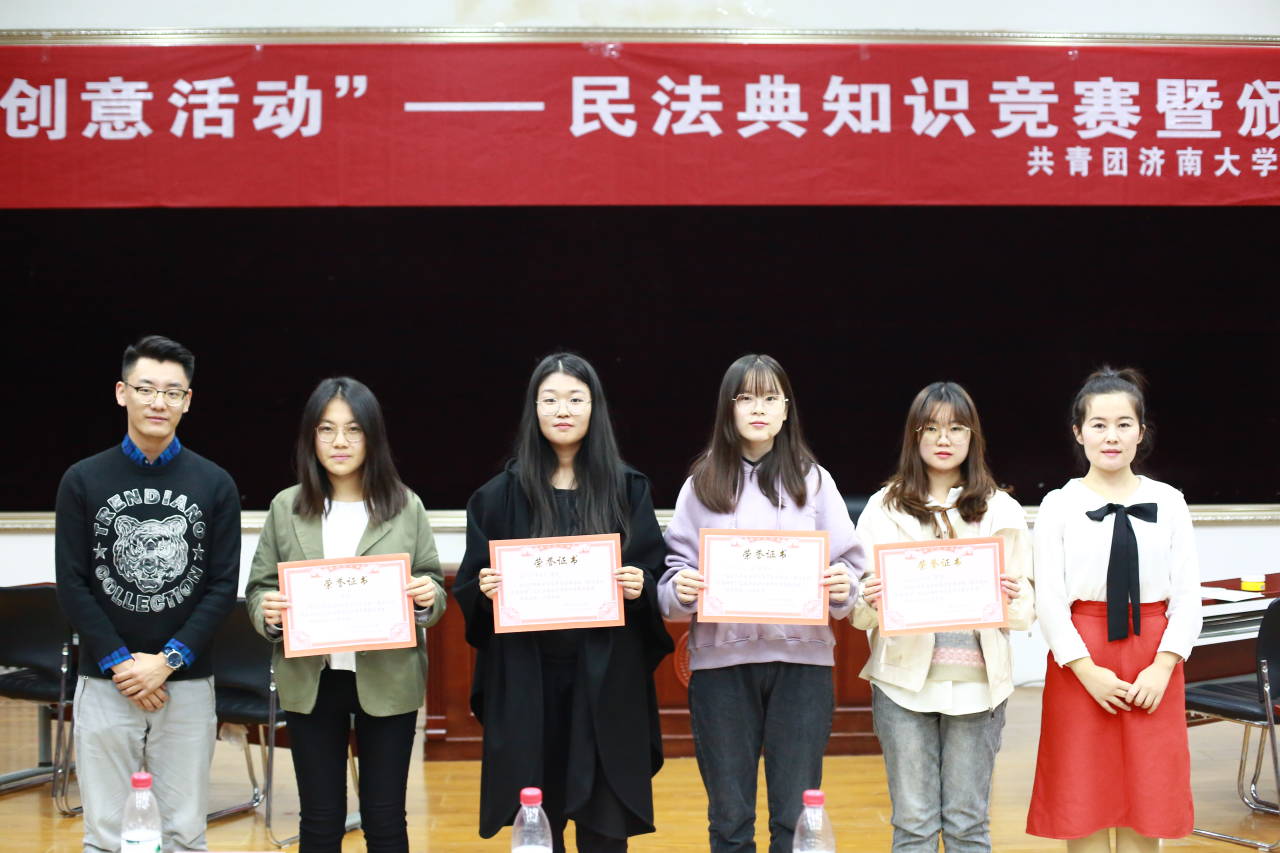 学生会主席王杰为生物科学与技术学院颁发二等奖,赵朔老师为机械工程学院颁发一等奖;接着是民法典知识竞赛的颁奖:由赵朔老师和买地阿依•阿布都古力老师为材料科学与工程学院,教育与心理科学学院,文学院,生物科学与技术学院颁发优秀奖,而后偷拍视频