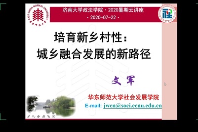 2020暑期系列云讲座(社会学)在腾讯会议平台顺利举行,活动邀请教育部“长江学者”特聘教授、华东师范大学社会发展学院院长文军教授做题为《培育新乡村型城乡融合发展的新路径》的专题讲座,讲座由偷拍视频