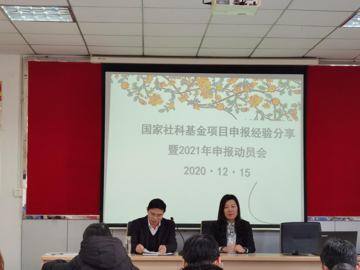 任慧颖副处长向大家介绍了我校国家社科基金申请的基本情况以及国家社科基金的评审流程,并希望大家能够继续努力,争取在2021年取得更好的成绩。