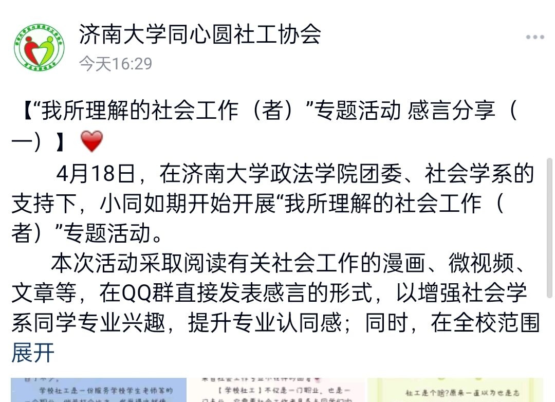 团委的带领下,各个社团积极响应号召,根据主题进行活动。其中,模拟联合国协会与省内各大高校的兄弟模联人一同合作,顺利举办了模拟人民政协专题协商会议,加深了同学们对我国现代化建设的认识,提升了同学们的政治自觉性及政治素养;同心圆社会工作协会开展了“我所理解的社会工作(者)”专题线上活动,同学们积极参与,发表感言,体悟和展现青年人的力量与担当;兵妈妈爱心团开展了“听老兵讲故事”线上活动,在老兵段升满同志的讲述下,同学们被革命战士们的深厚情谊所感动,更加深知和平生活来之不易,当勿忘历史,砥砺前行。