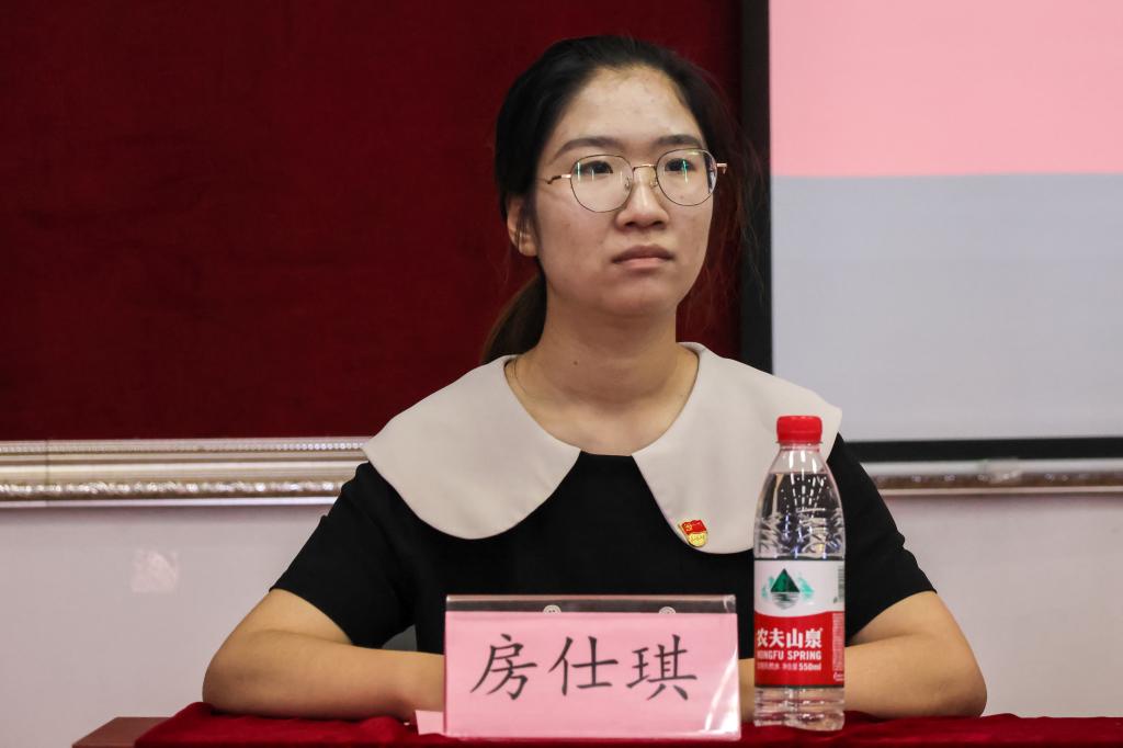 大会在庄严肃穆的《国际歌》声中拉开序幕。学院团委书记刘晓娟宣读新发展党员名单,与会领导、老师为预备党员代表佩戴了党徽,赠送《中国共产党章程》。全体新党员面向党旗站立,举起右手握拳,在法学学生第二党支部书记房仕琪同志的领誓下,进行了庄严宣誓。党员们昂首挺胸,在阵阵激昂的宣誓声下,每个党员均用心传递着他们昂然向上的斗志和报效祖国的决心。公共管理学生党支部党员骆凯霖代表新发展预备党员进行了发言,他讲述了自己入党前后的心路历程,充分展现了一名新党员的蓬勃生机与殷殷成长。并表示今后一定会加强理论学习,严格要求自己,坚决拥护“两个确立”,做到“两个维护”,增强四个意识,坚定四个自信,努力成为合格的中共党员。社会学研究生党支部书记王丹代表正式党员发言。她梳理了自己入党以来的成长与蜕变,真情抒发了一名老党员对党的忠诚之怀与对人民的热忱之心。并鼓励同志们自觉践行新思想,时刻牢记新使命,刻苦锻炼新本领,奋发展现新作为。