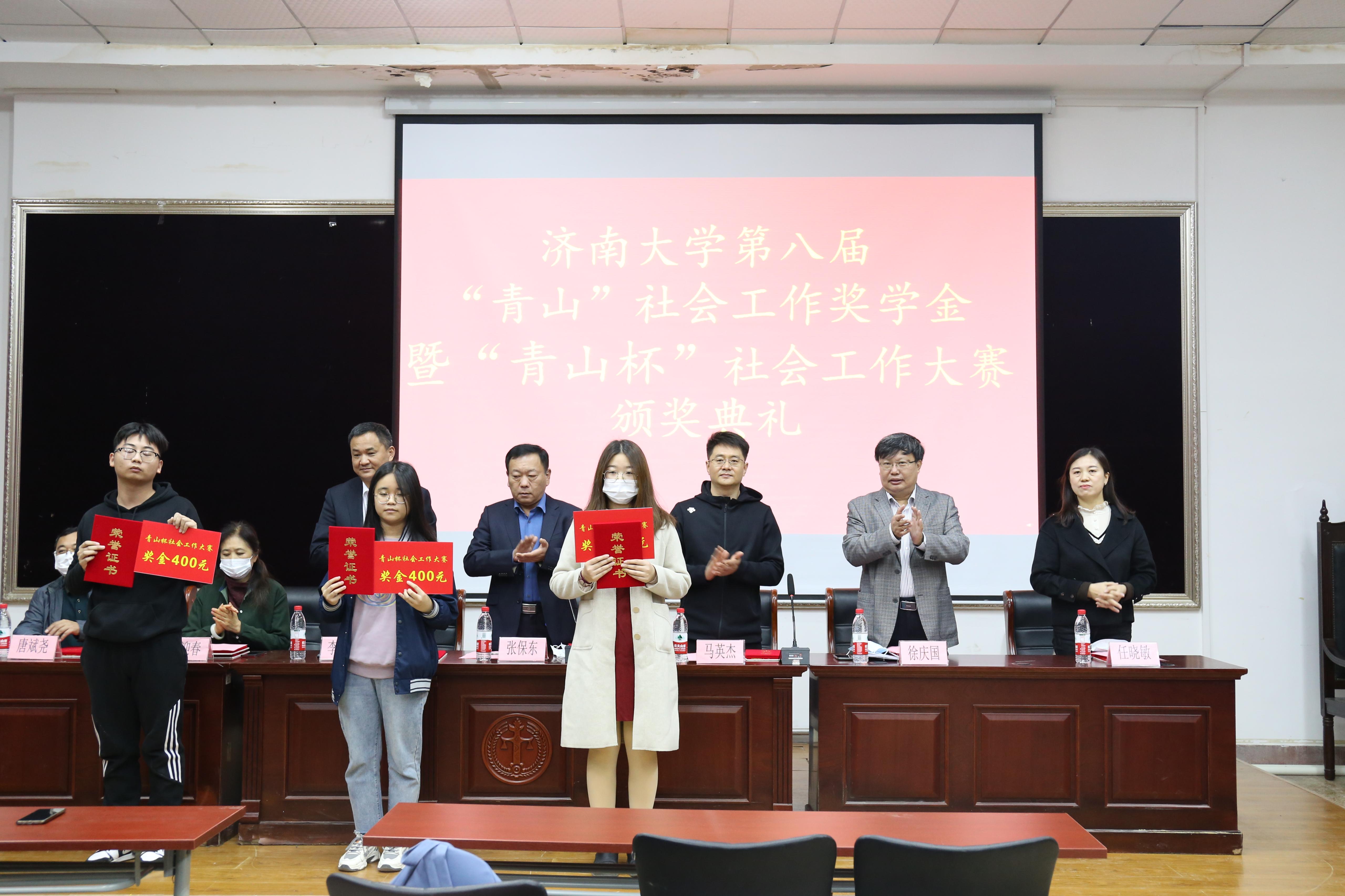社会学系许淑华老师宣读了“青山杯”社会工作大赛获奖学生名单,与会嘉宾为获奖学生颁奖。
