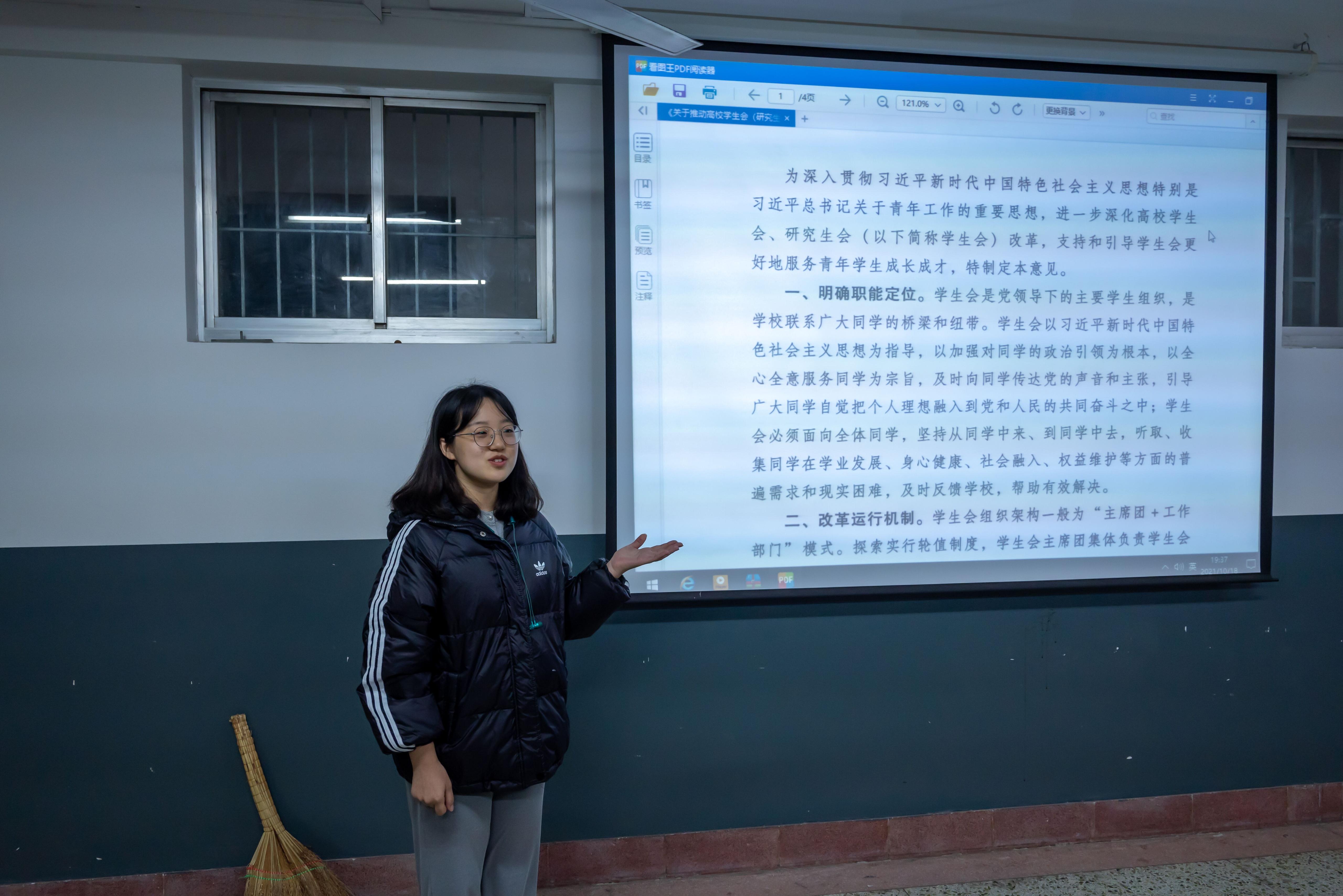 学生会在第四教学楼505教室组织开展深化学生会改革专题学习会暨工作人员培训会。学生会主席团及各部门负责人参与本次专题学习会。
