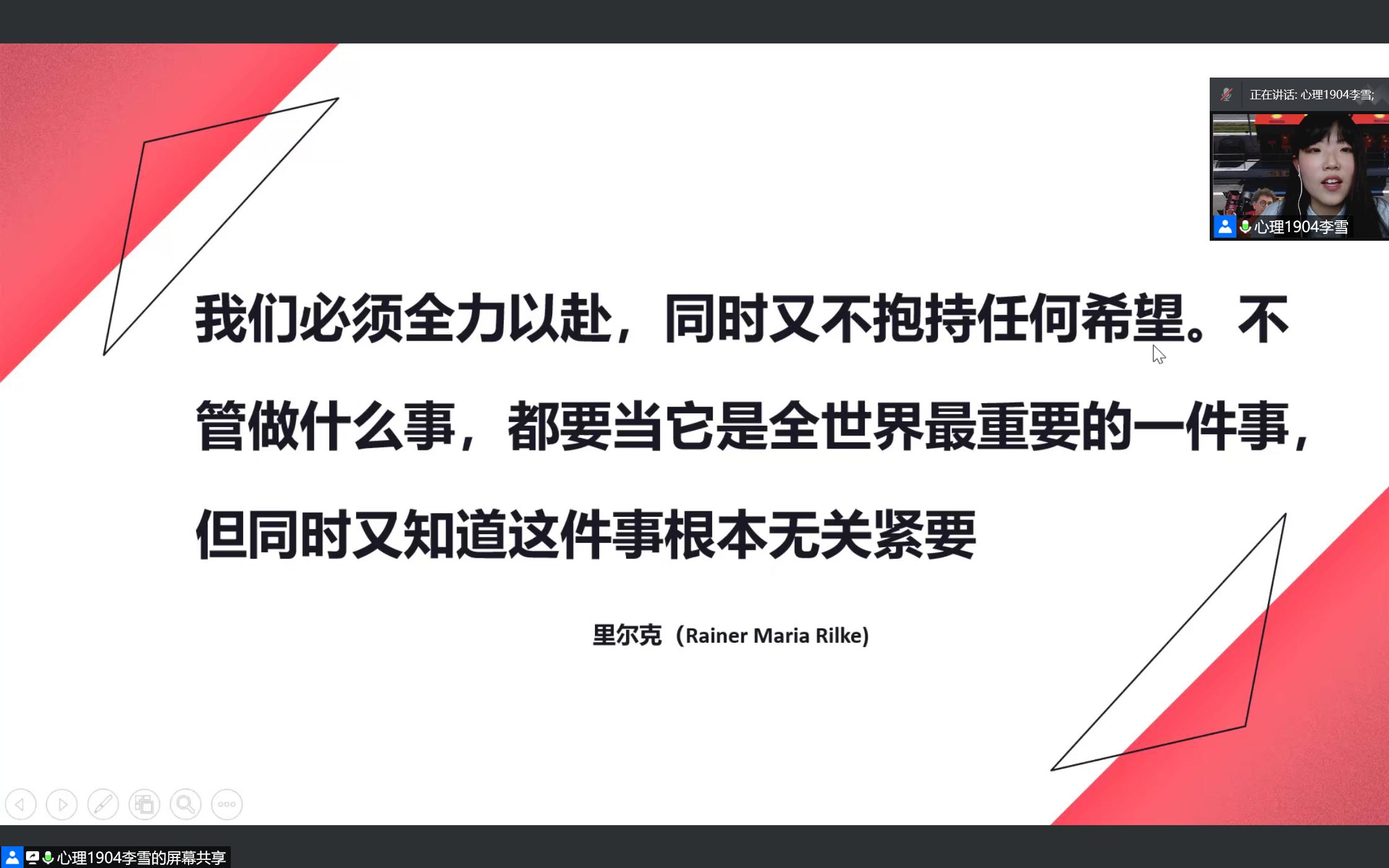 待参会同学和讲师进入腾讯会议后,主持人致开场词,简要介绍本次团辅活动的讲师以及活动流程宣布本次团辅活动正式开始。