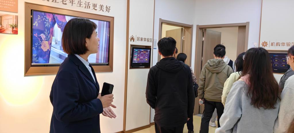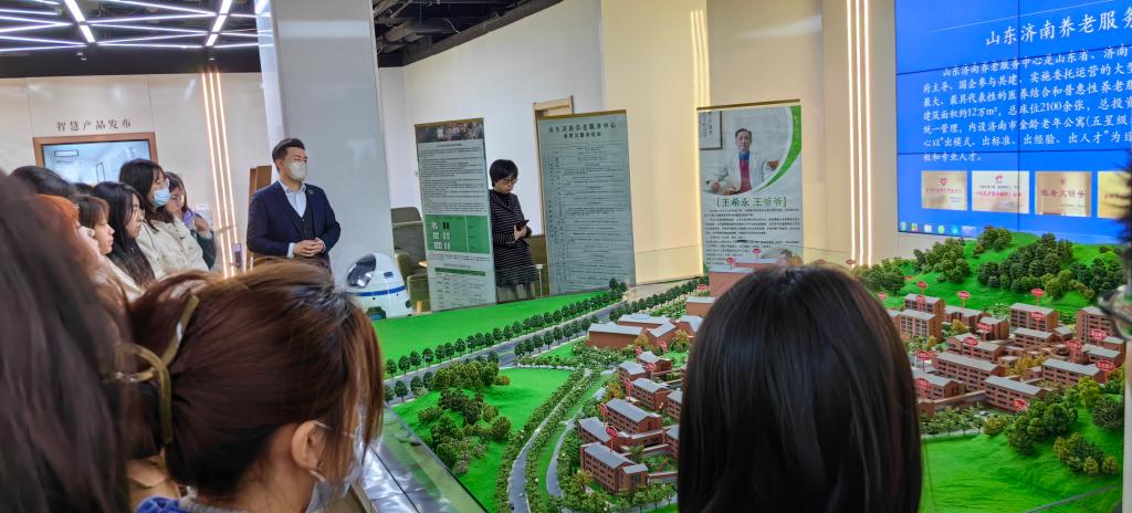 4月25日上午,在山东济南养老服务中心,同学们在工作人员引导下,了解到整个园区是按照CCRC模式打造的持续照料退休社区,设有康养专区、享养专区、普惠专区、医护专区和候鸟旅居区。随后,工作人员带领同学们实地参观了山东济南养老服务中心的硬件设施和软件设施。在参观过程中,同学们认真倾听工作人员讲解康养区、享养区和普惠区三大板块的不同,并从中了解了该中心一直秉承“爱心、诚心、恒心、责任心”四大核心服务理念以及六养结合新模式为长者提供优质服务。参观结束后,同学们还就自己关心的就业问题及养老问题等向工作人员做了请教。