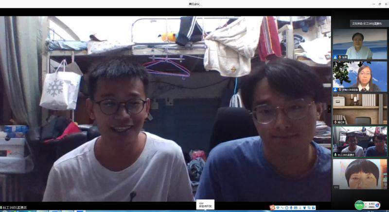 虽然本次毕业生欢送会在云上召开,但会议筹备组在社会学系王春燕老师的指导下,用心积极筹备,为2016级毕业生准备了形式多彩的节目。2019级的戴大磊、陈小淋以及刘菲、王誉瑶分别深情演唱了《起风了》和《歌曲串烧》,歌词中凝聚着期盼,饱含着对学长学姐的祝福;2019级刘慧则带来了热身游戏,不禁让同学们回忆起社工课堂上做游戏互动的点点滴滴;2019级的王晓龙和鲁崇飞(笛子伴奏)带来的诗朗诵《你的眼睛是火焰》,字字真情,声声动情。2019级同学们的精彩演出,不仅展现了新生的风采,而且表达了他们对于毕业学长学姐的送别祝福。2018级贾蕙泽带来的独舞,更为本次云上聚会锦上添花;最后,晚会播放了2018级陈瑶瑶根据2016级同学提供照片所制作的快闪视频,视频中送上了对毕业同学的深深祝福。晚会现场,师生气氛热烈,互动融洽。