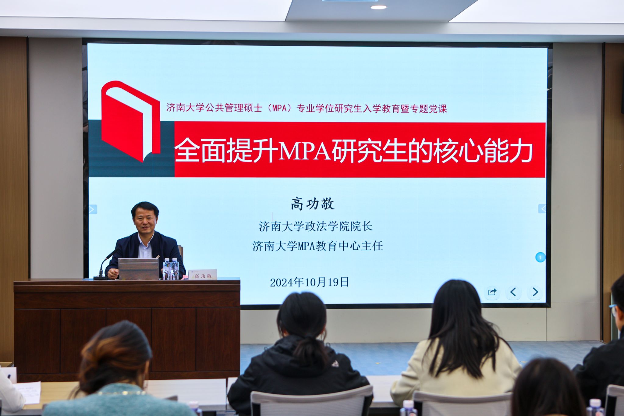 高功敬院长为新生做主题为“全面提升MPA研究生的核心能力”的专题报告暨主题党课。他结合习近平总书记的重要讲话精神、毛泽东调查研究思想和经典著作,以及研究生阶段学习的目标要求,重点解读了MPA研究生需要具备的四项能力:政治能力、思维能力、调研能力和学习能力。