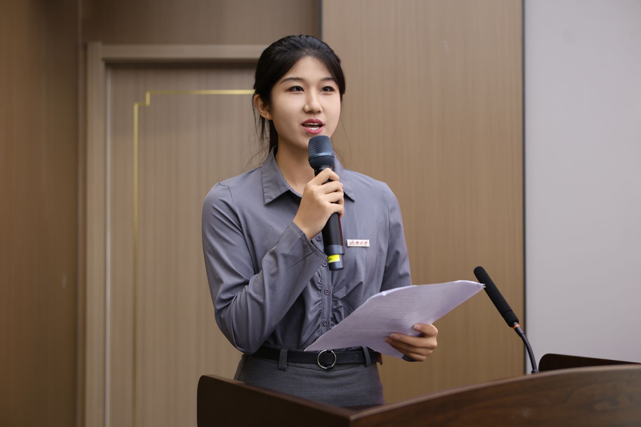 2024级MPA研究生李静雯作为新生代表发言,心怀对未来学习生活的憧憬和展望,她表示一定会珍惜在校学习时光,坚定信念,勤勉求知,在偷拍视频