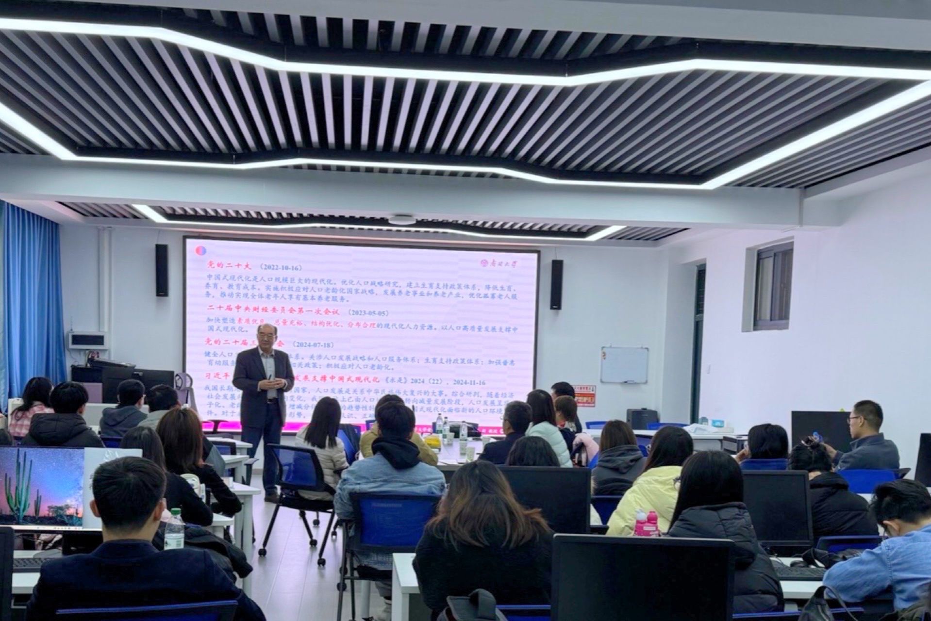 原新教授从六个维度对人口高质量发展的新常态进行了深入解读,阐述了人口发展的趋势性变化,深度剖析了人口结构转型带来的系列影响,强调提升人口素质对高质量发展具有重要意义。他指出,伴随着我国人口发展步入新阶段,人口老龄化的加速、生育率持续走低等问题凸显,人口高质量发展成为必然要求与新趋势,人口高质量发展的新常态要求人口与经济、社会、资源环境等多方面的统筹协同发展。原教授的讲座引发了现场师生强烈的兴趣,围绕着人口政策优化、人口红利等与原教授进行了深入的互动交流。