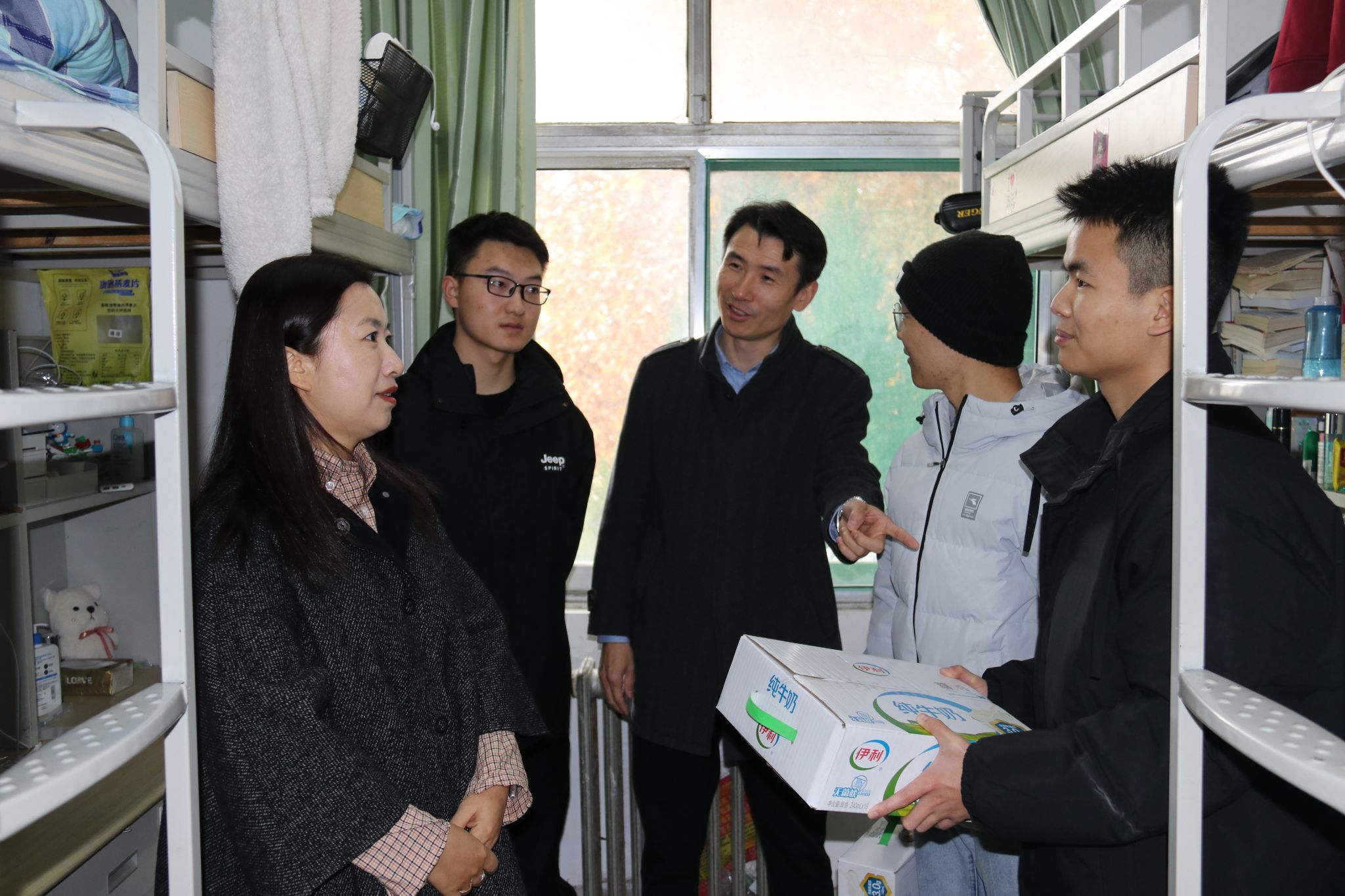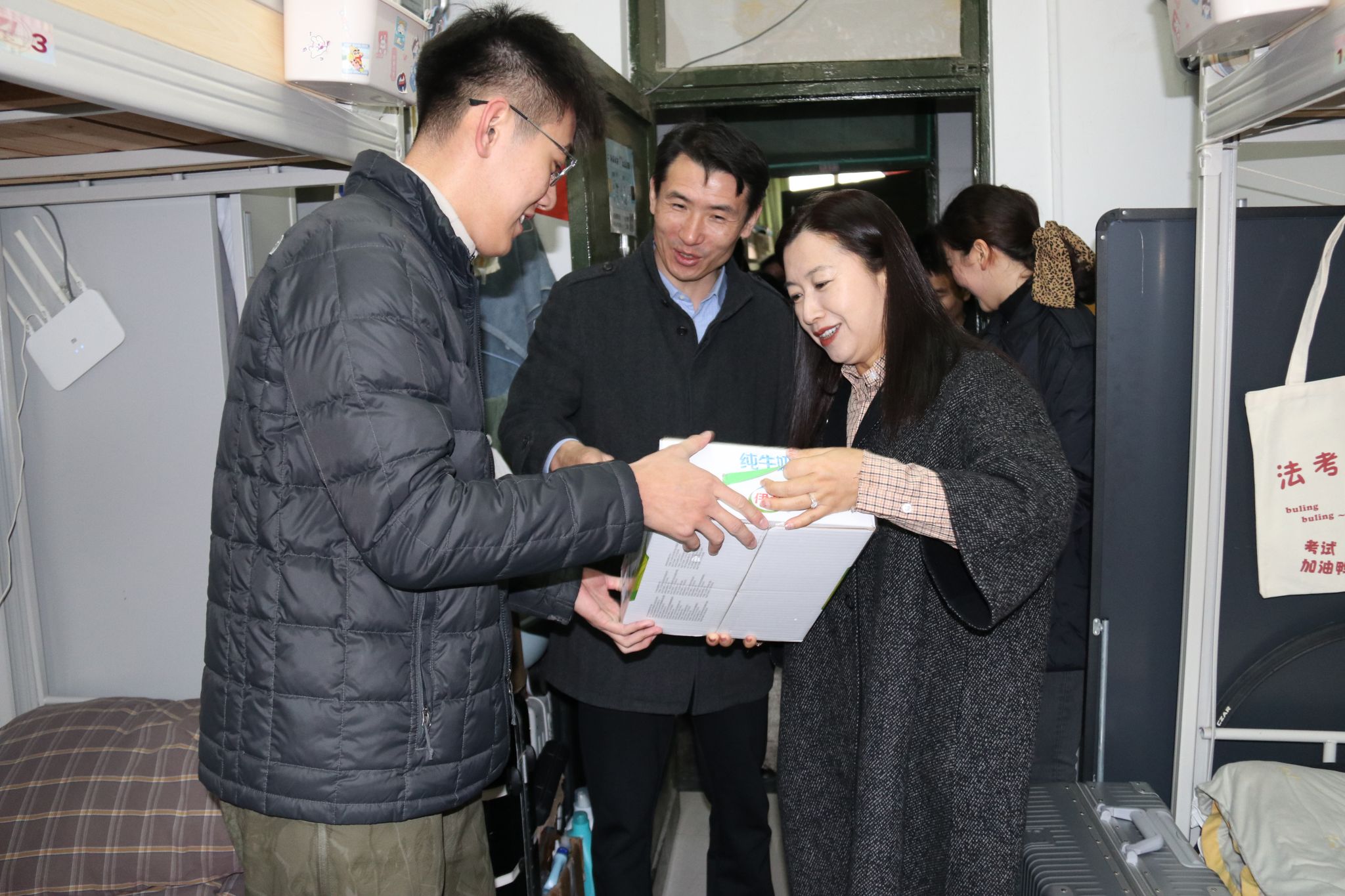 于学生公寓楼开展考研慰问活动。学院党委书记李春慧,党委副书记、副院长李涛以及全体辅导员老师们参加活动。
