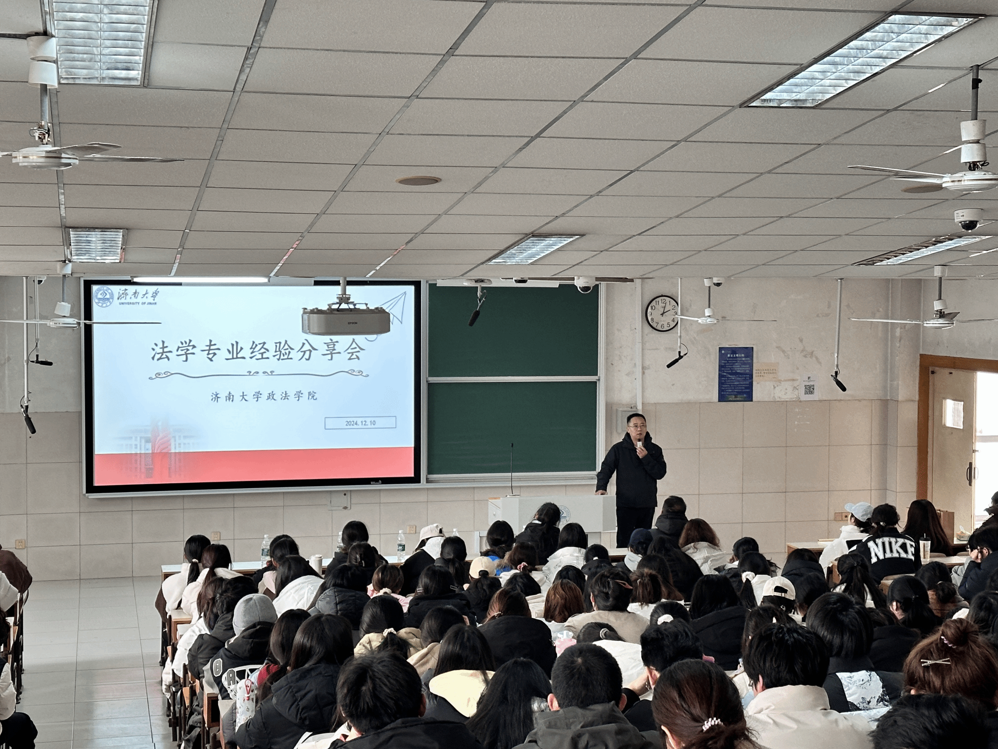 举办法学专业学习经验分享会。法学系主任刘康磊、2024级辅导员沈正浩、高年级优秀学生代表及2024级法学专业全体学生参加活动。