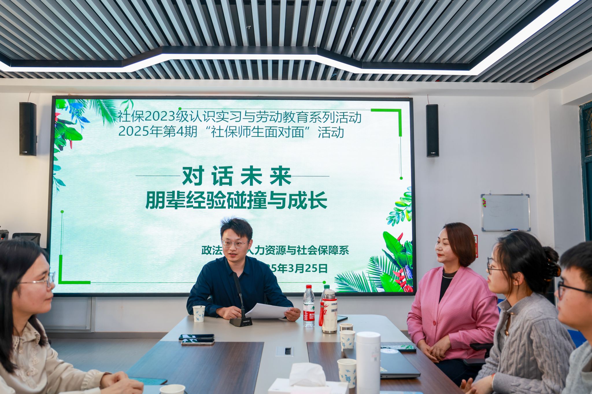 于第四教学楼413教室成功举办了“对话未来:朋辈经验对撞与成长”优秀朋辈专业分享会,也是2025年第4期“社保师生面对面”活动。偷拍视频