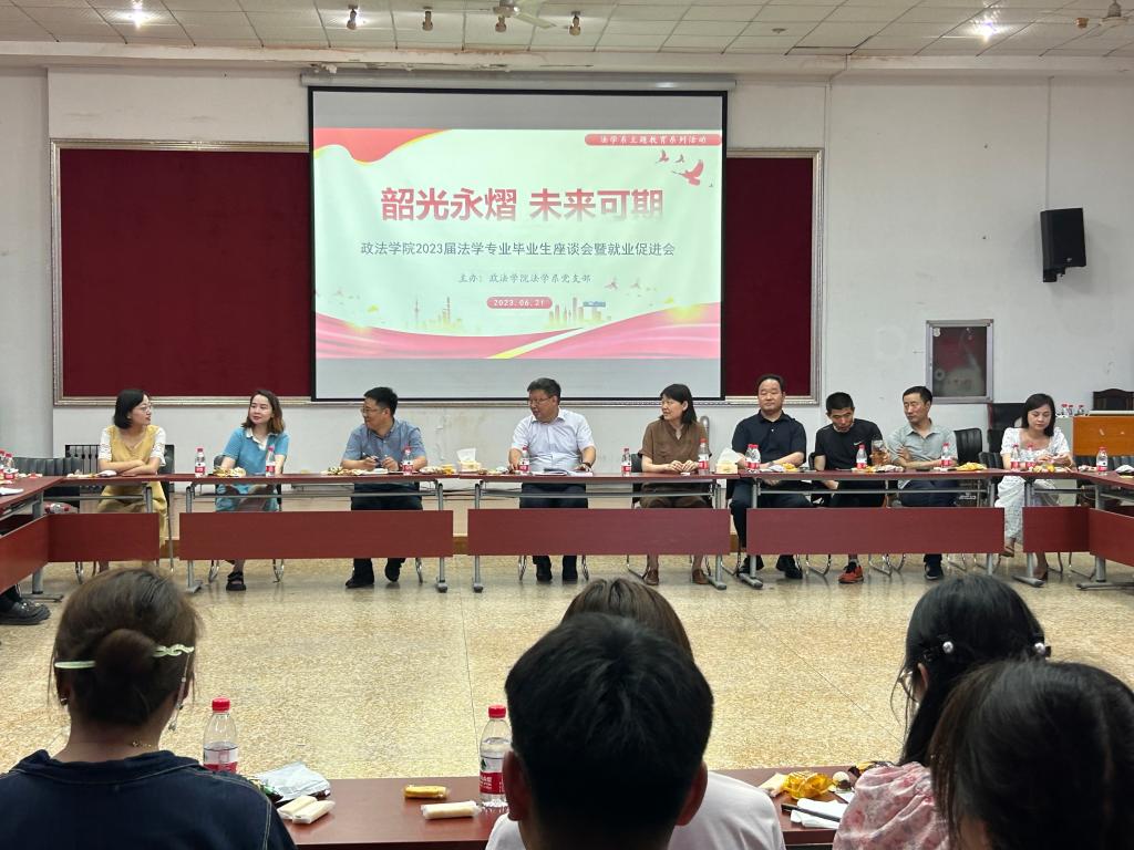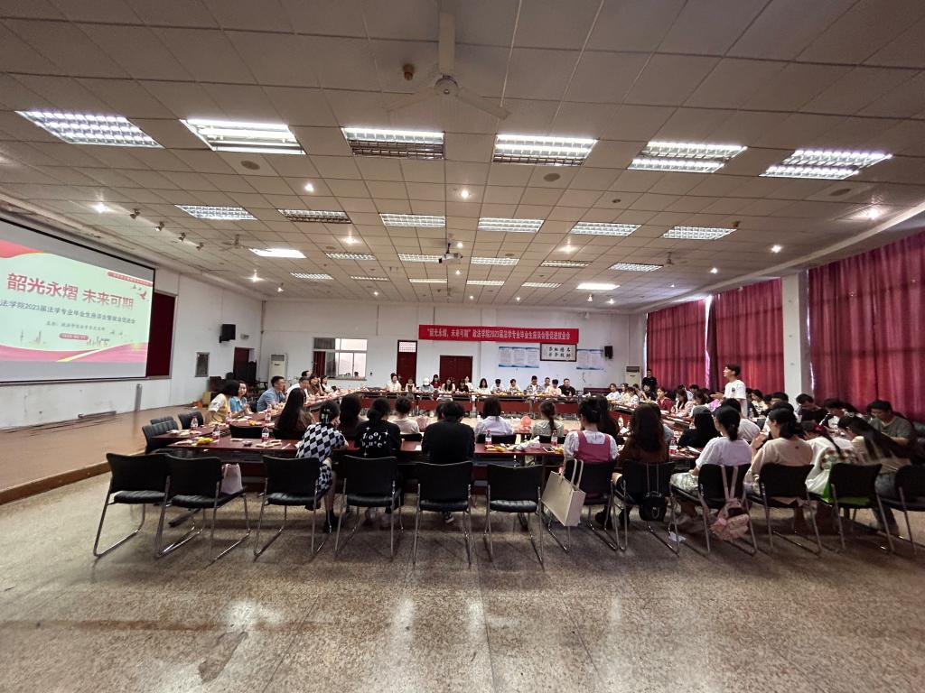 于四教模拟法庭举办“韶光永熠 未来可期”法学系2023届毕业生座谈会暨就业促进会。学校党委常委、统战部部长、偷拍视频