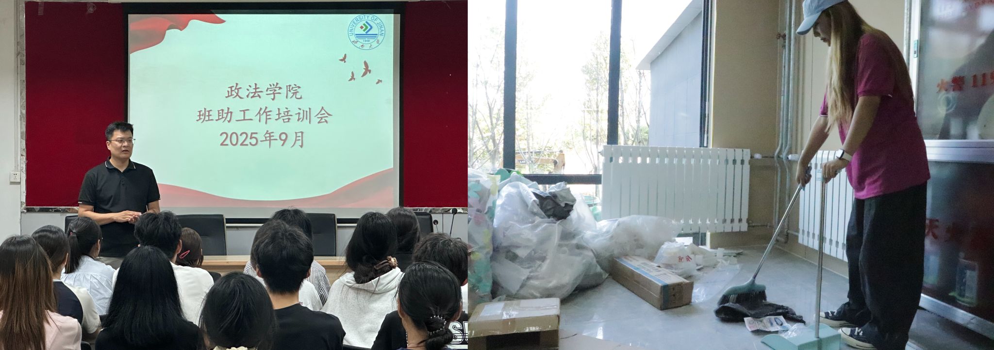 为确保迎新工作规范高效开展,学院于新生报到前组织班级助理与志愿者开展专题培训,系统讲解报到流程、问题应答、心理引导与岗位职责等内容。通过经验分享、案例教学和情景模拟等培训形式,提升志愿者的业务与应急处置能力,深化“迎新即育人”理念的理解,使志愿服务成为践行“立德树人”的生动实践。此外,学院还提前组织志愿者进驻新生宿舍,开展设施检修、张贴床号与清洁整理等工作,为新生营造整洁温暖的居住环境。