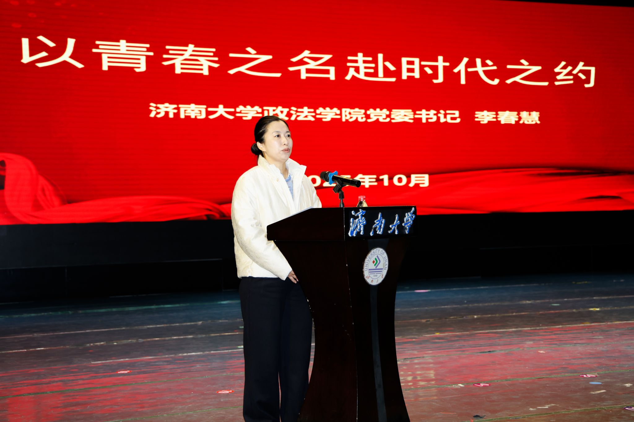 学院在校生代表2022级行政管理专业、国家奖学金获得者孟冉,2025级本科新生代表法学2504班吕曼清、2025级研究生新生代表社会工作专业刘昱、辅导员代表2025级本科生辅导员李纪亮分别进行了发言。