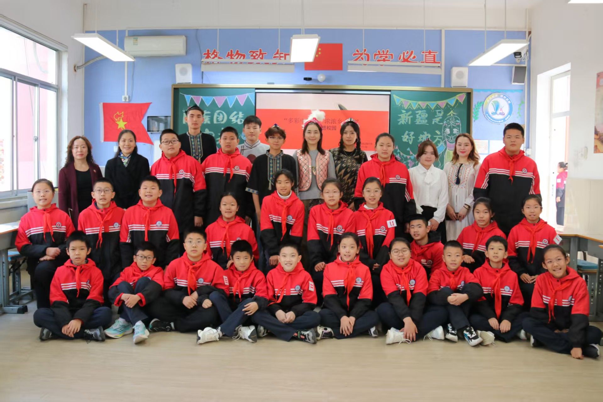 这堂民族团结宣讲课不仅使志愿者们内心充满了感动与满足,更为孩子们带来了浸润民族文化与团结力量的特色课程,成为了大家心中爱国情怀的熔炉,让孩子们理解了民族团结的真谛。未来,学院将继续深化“铸牢中华民族共同体意识”宣传教育实践,推动民族团结进步教育不断取得新成效,以更高站位、更实举措、更深情怀培养具有民族团结进步基因,堪当民族复兴大任的时代新人。