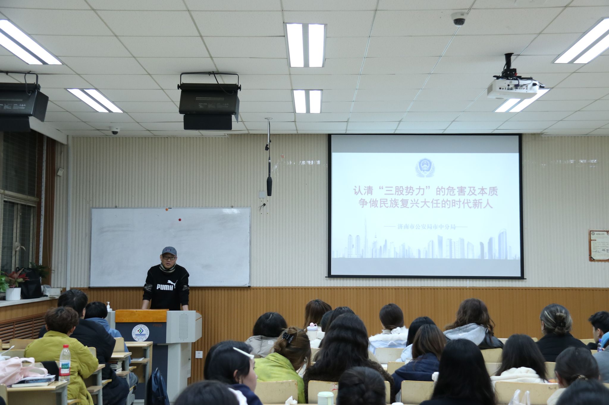 开展以“明辨本质,青春担当”为主题的安全教育活动,市中区公安局王建国主任、学院党委副书记李涛、学院少数民族专职辅导员迪妮尕尔·艾尔夏提、预科班全体学生、学院各年级少数民族学生代表参与活动。