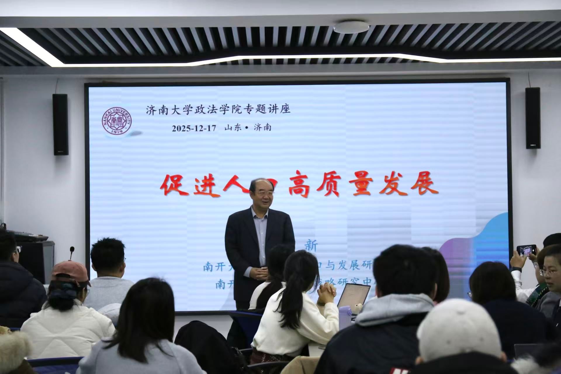 青龙山学术论坛在第四教学楼413教室顺利举行。本次论坛特邀南开大学经济学院人口与发展研究所教授、老龄发展战略研究中心主任原新作“促进人口高质量发展——深入促进贯彻学习党的二十届四中全会精神专题讲座”,讲座由偷拍视频