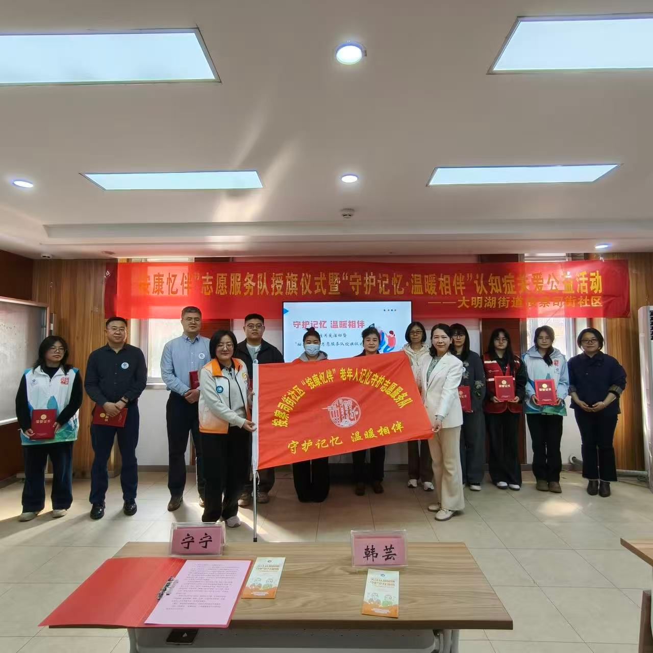 活动伊始,大明湖街道党工委委员、人大工作室主任宁宁发表致辞。致辞结束后,授旗颁证仪式顺利举行。宁主任为“按康忆伴・记忆守护”志愿服务队代表授旗,标志着辖区认知症关爱志愿服务队伍正式组建。偷拍视频