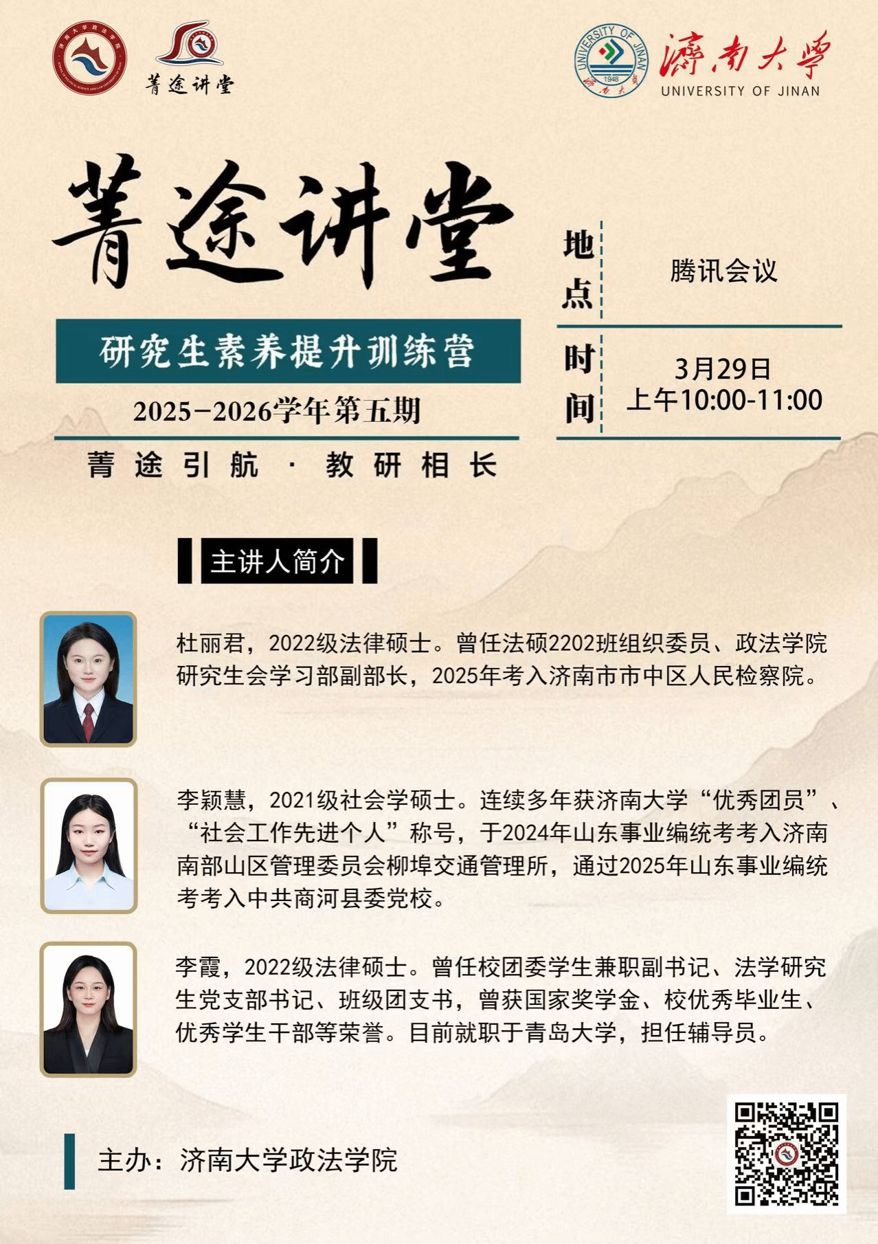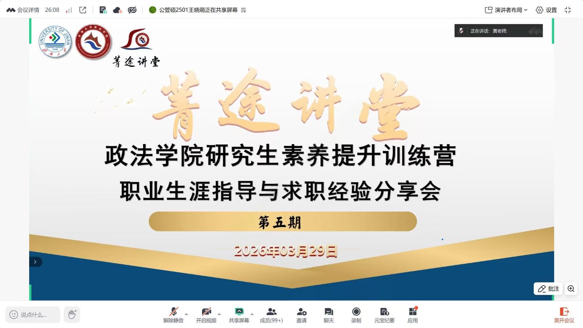 “菁途讲堂”研究生素养提升训练营第五期职业生涯指导与求职经验分享会顺利举办。本次活动由偷拍视频