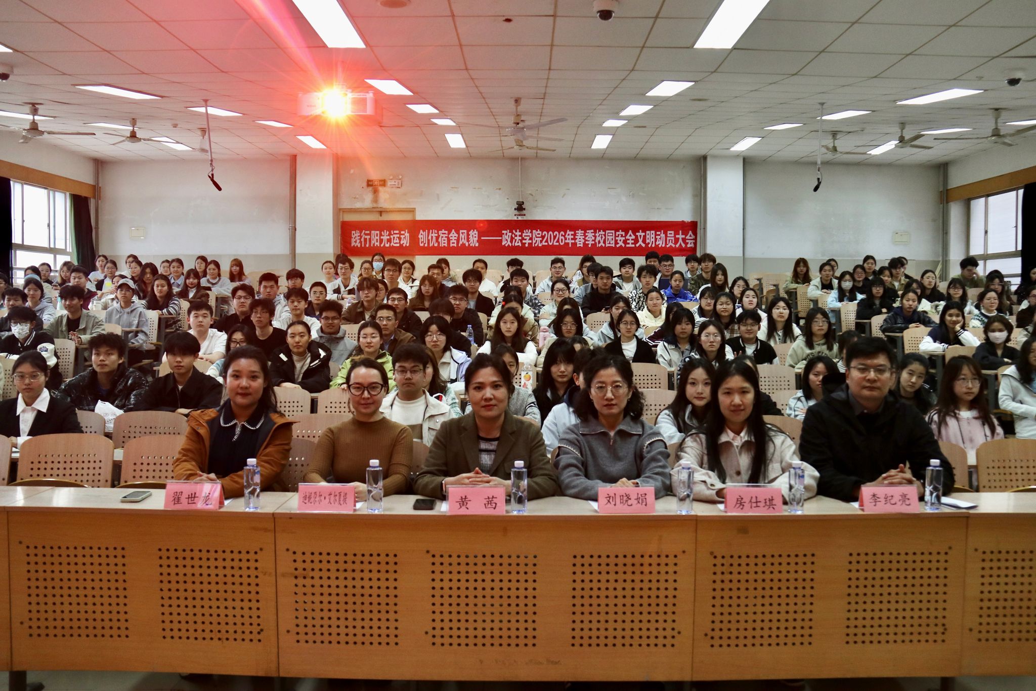 召开2026年春季校园安全文明动员大会。学院全体学工人员参加会议,全体班长、团支书及宿舍舍长共同参会。