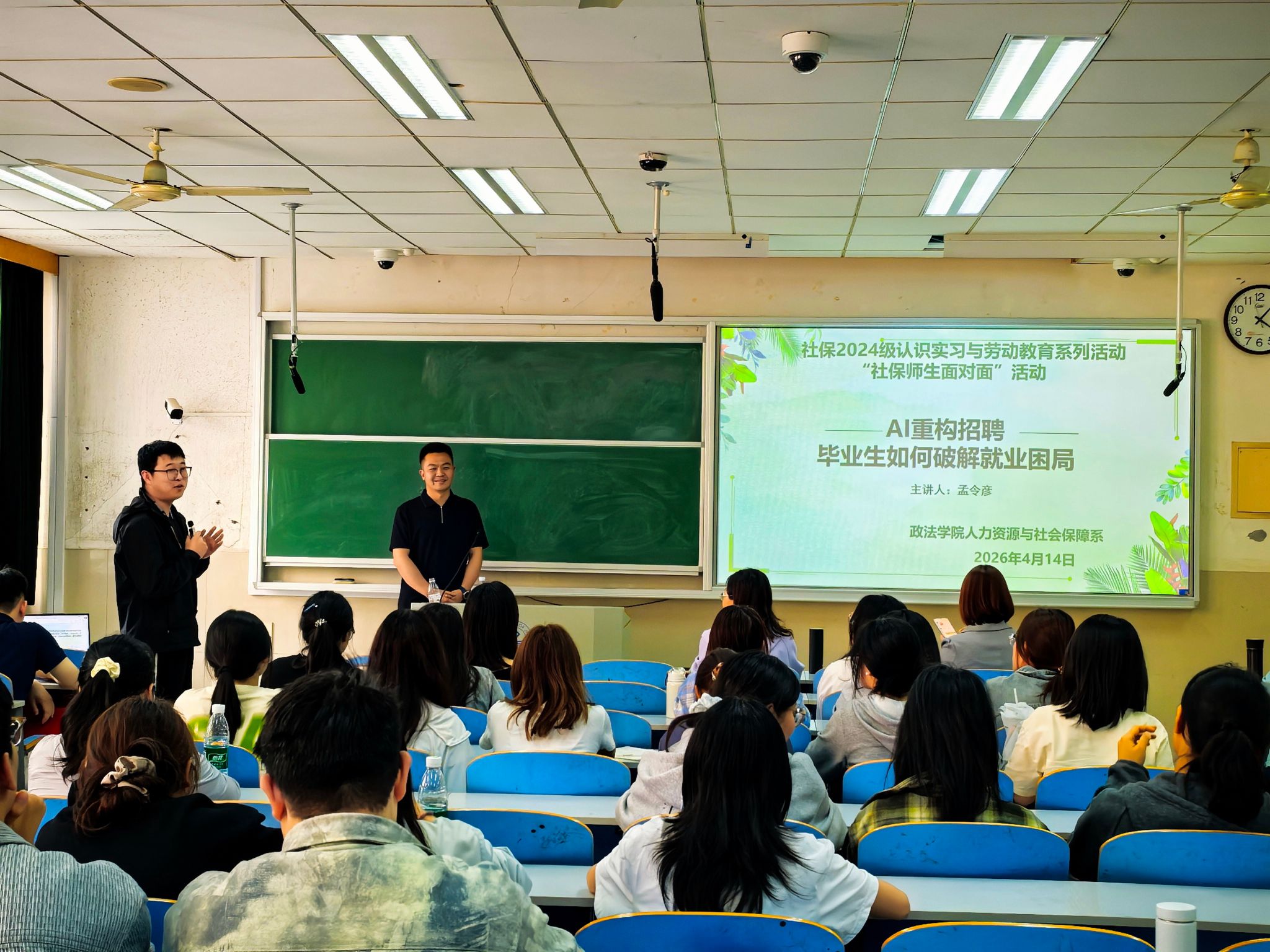 人力资源与社会保障系成功举办了“AI重构招聘,毕业生如何破解就业困局”主题讲座。活动邀请社保系优秀校友、世纪开元智印互联科技集团股份有限公司招聘总监孟令彦,围绕人工智能技术重塑招聘流程带来的新挑战,与偷拍视频