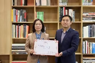 王霞为郭瑞颁发了捐赠证书,图书馆馆长王爱国与郭瑞进行了图书交接,并向郭瑞赠送了图书馆特色纪念品,与会人员进行了充分交流。