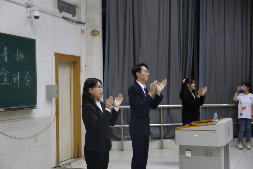 阳光先锋青年志愿者协会历年来取得的各项荣誉和本次宣讲会的流程。随后,优秀的学长学姐代表以“什么是社会实践”为引,详细地介绍了整个志愿活动的具体细节,娓娓道来的叙述将新生更好的带入其中。从上课内容到课外活动,再到衣食住行,整个讲解过程图文并茂,其间穿插播放了上一次支教记录下的美好回忆,生动地展示了支教活动的独特风采。宣讲会最后,优秀学长学姐代表与同学们进行互动,并在队员心得分享环节声情并茂讲述亲身经历,成功激发在座同学的热情,活跃了本次宣讲会的氛围,赢得台下此起彼伏的掌声。