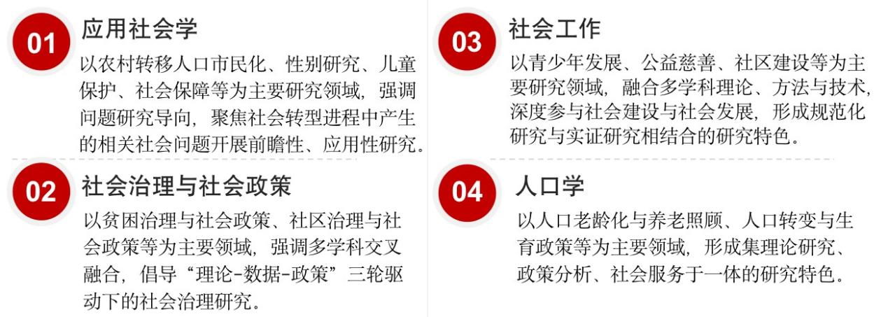 本学位点与国内外学术界有着广泛的学术交流,注重培养学生的研究能力、科研创新能力培养,高度重视社会调查研究方法实践能力训练。